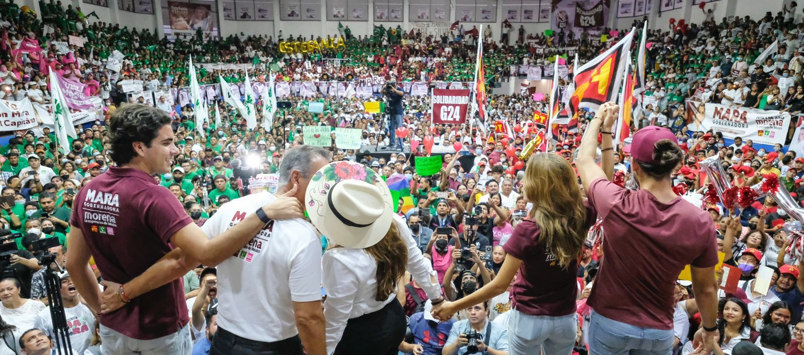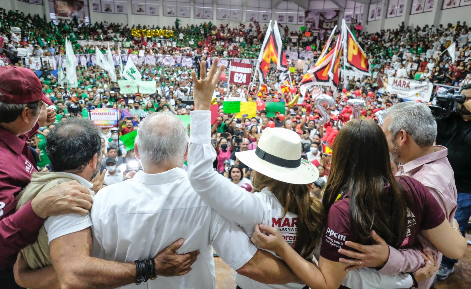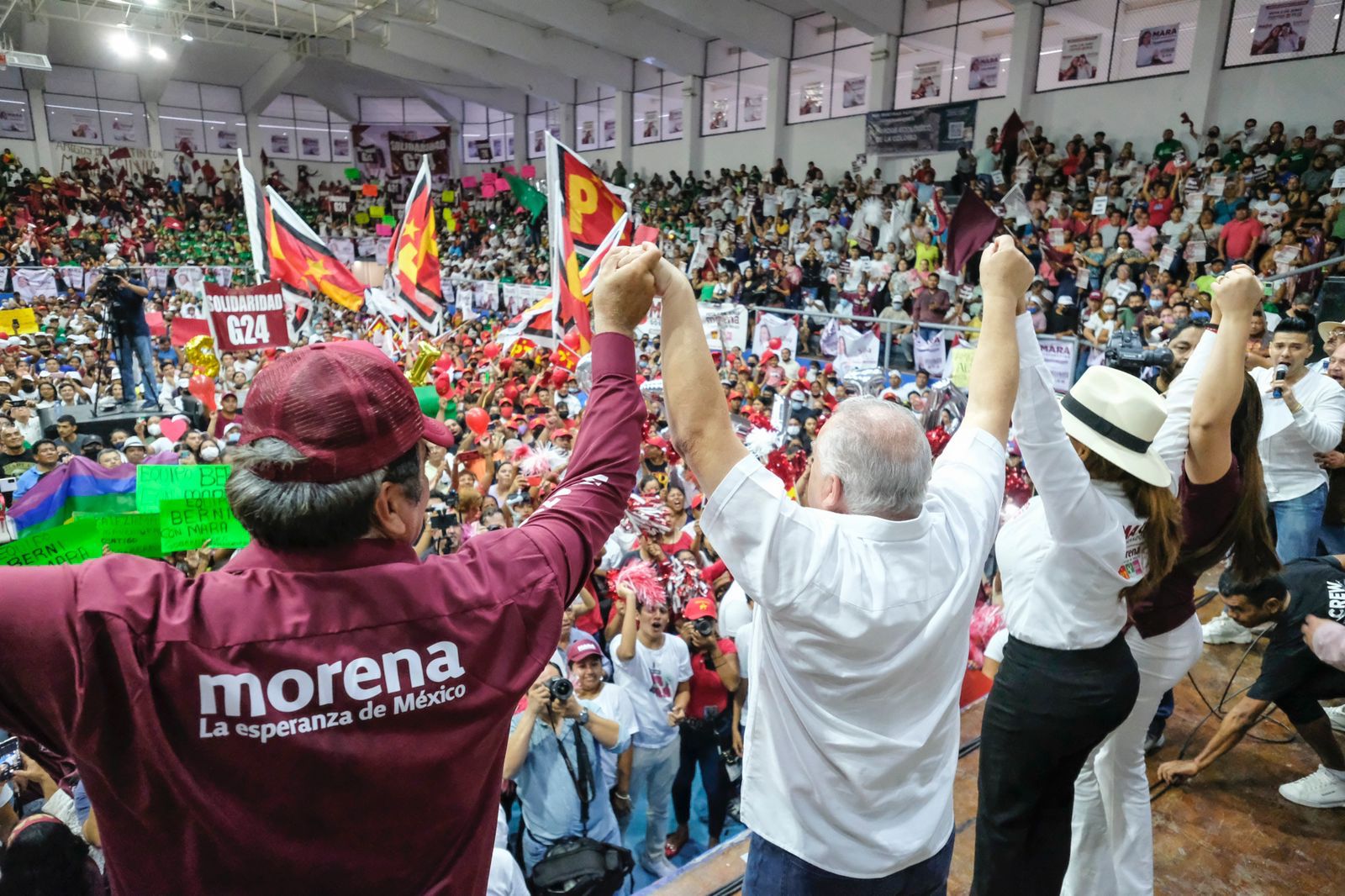Sigamos sumando para acabar con tantos años de malos gobiernos, tener un gobierno del pueblo, para el pueblo y por el pueblo, barrer la corrupción de arriba hacia abajo, escribir las páginas más bellas de la historia del Estado y llevar a la Cuarta de Transformación a la gubernatura y el Congreso para concretar el nuevo Acuerdo por el Bienestar y el Desarrollo de Quintana Roo, manifestó.