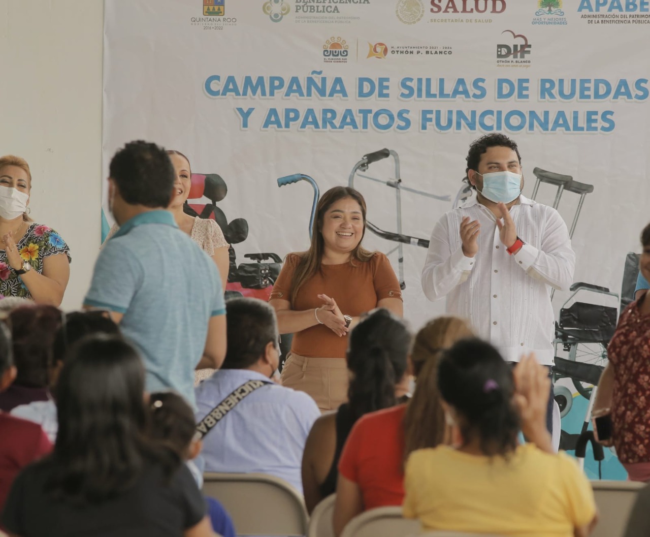 Chetumal, Q. Roo a 5 de julio. – En respuesta a las solicitudes de la ciudadanía y las gestiones realizadas, este martes, la presidenta municipal de Othón P. Blanco, Yensunni Martínez Hernández; y el presidente del sistema DIF othonense, David Hernández Solís; atestiguaron en la comunidad de Álvaro Obregón Nuevo, la entrega de sillas de ruedas, bastones y más, que realizó la directora general de la beneficencia pública del estado de Quintana Roo, Miriam Osnaya Sánchez.