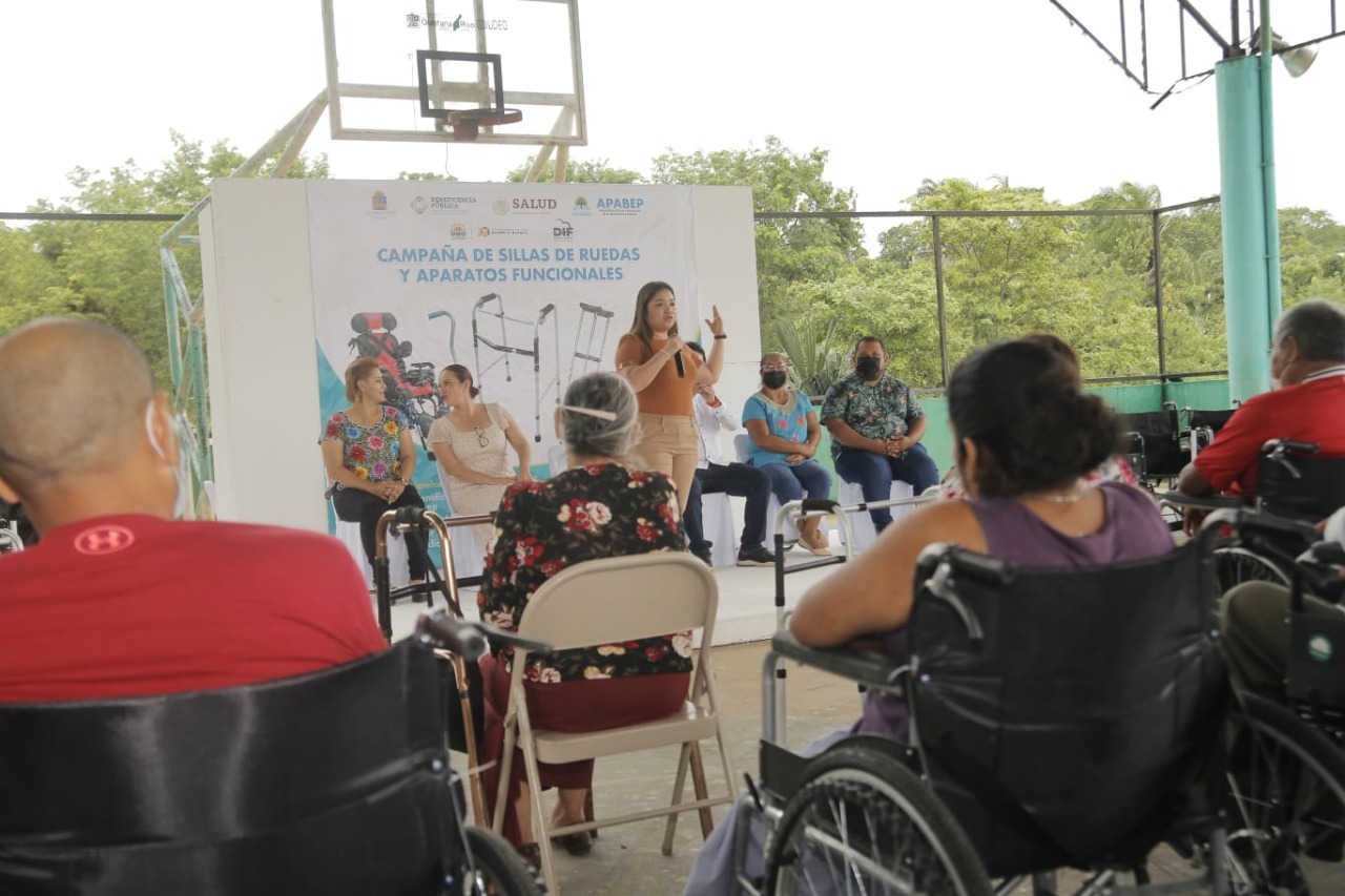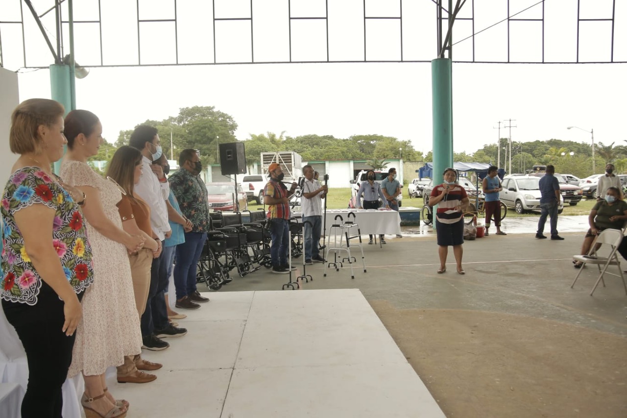 Chetumal, Q. Roo a 5 de julio. – En respuesta a las solicitudes de la ciudadanía y las gestiones realizadas, este martes, la presidenta municipal de Othón P. Blanco, Yensunni Martínez Hernández; y el presidente del sistema DIF othonense, David Hernández Solís; atestiguaron en la comunidad de Álvaro Obregón Nuevo, la entrega de sillas de ruedas, bastones y más, que realizó la directora general de la beneficencia pública del estado de Quintana Roo, Miriam Osnaya Sánchez.