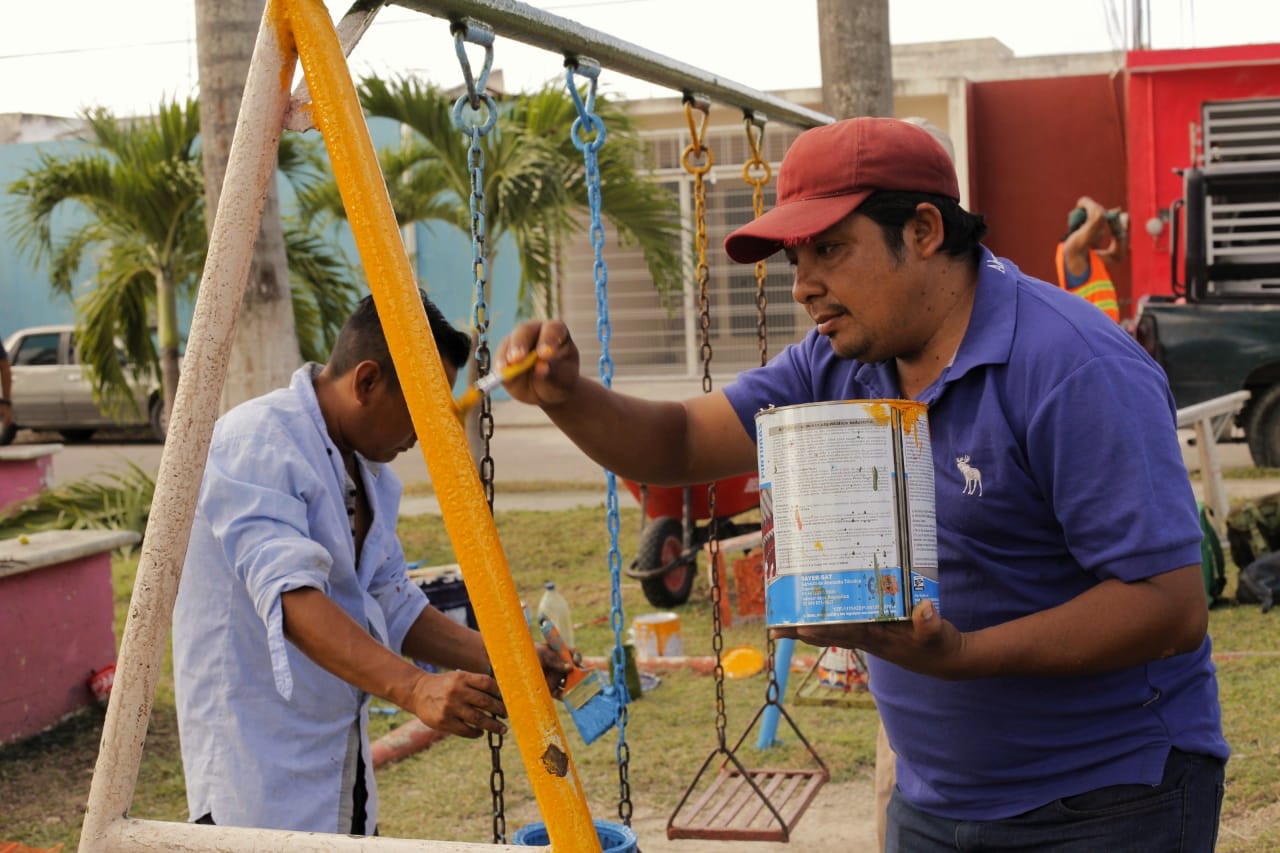 Es por ello que, la dirección de servicios públicos municipales comenzó con el trabajo que se lleva a cabo de forma integral en el parque antes mencionado, con pintura, limpieza, mantenimiento de juegos infantiles y puesta de luminarias.