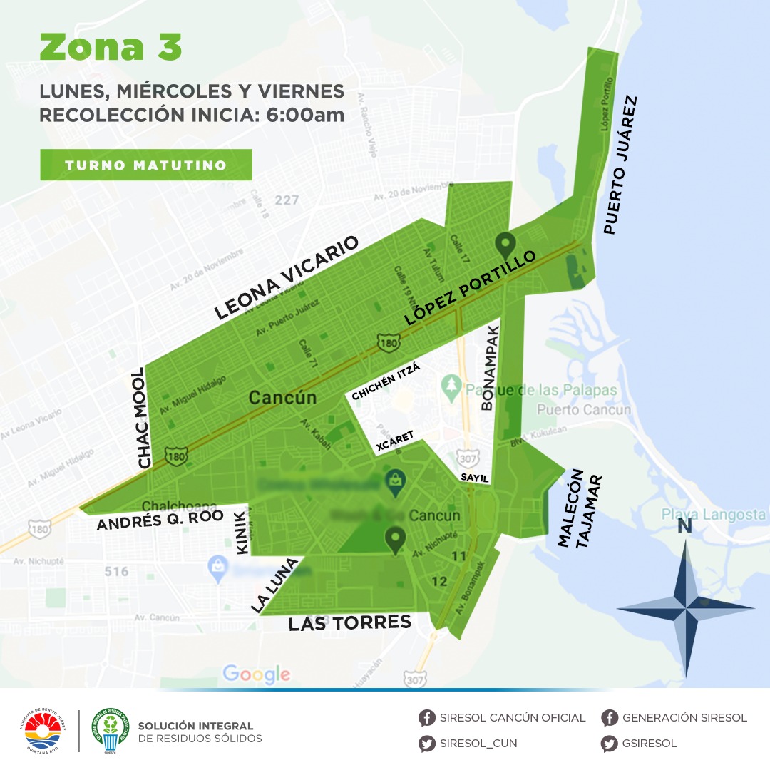 Resaltó que este ajuste de zonas, hecho desde hace un mes, fue primeramente en la zona 3 que comprende la subdelegación de Puerto Juárez, Malecón Tajamar, Supermanzanas 11 y 12, así como los polígonos que se forman entre las avenidas Chichén Itzá a Leona Vicario, Xcaret a Andrés Quintana Roo y Xcaret a Bonampak, a la que se sumaron las supermanzanas entre Kabah y Kinik, así como La Luna y las Torres, conservando los días lunes, miércoles y viernes desde las 6:00 horas.