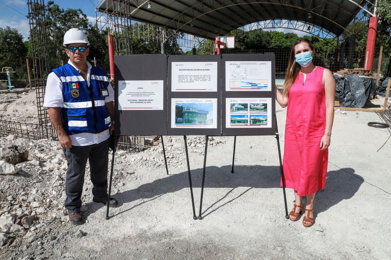Durante su recorrido por la obra del Banco del Bienestar, el cual se estima esté listo a mediados del próximo mes de octubre, la alcaldesa agradeció el apoyo del Gobierno Federal en el fortalecimiento de acciones y la construcción de obras sociales, adelantando que en los próximos meses se desarrollarán nuevas obras tanto en la Zona Continental como en la Insular.