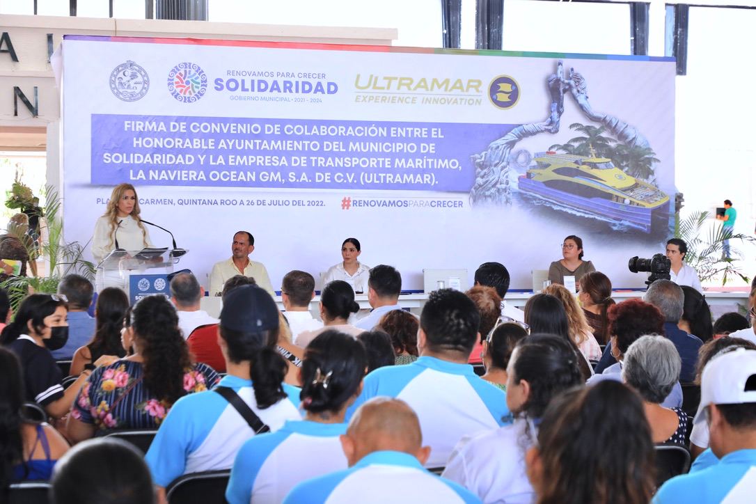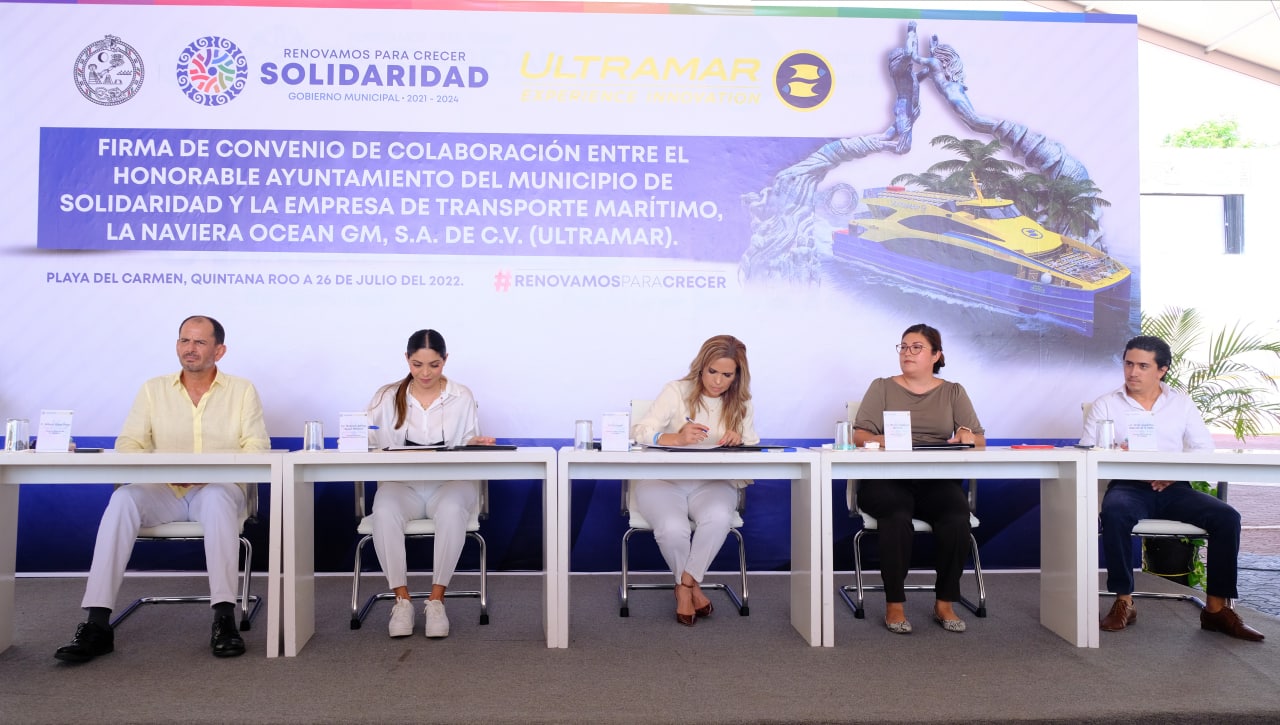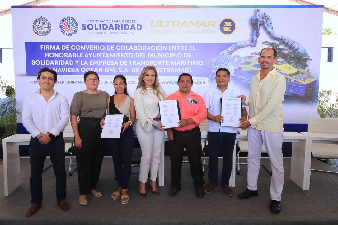 Playa del Carmen, Solidaridad, 26 de julio de 2022.- El gobierno que encabeza la presidenta municipal, Lili Campos, logra por primera vez que la empresa Ultramar firme un convenio de colaboración de transporte marítimo y turismo con el Ayuntamiento de Solidaridad para ofrecer un descuento en el cruce a Cozumel.