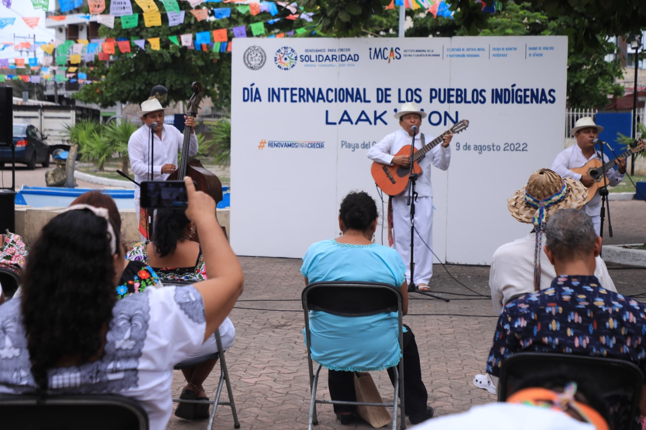 Playa del Carmen, Solidaridad, 9 de agosto de 2022.- Con una ceremonia maya, la presentación de los voladores de Papantla, un trio musical y una muestra gastronómica, fue celebrado el Día Internacional de los Pueblos Indígenas “LAAK`O´ON”, en el parque Leona Vicario.