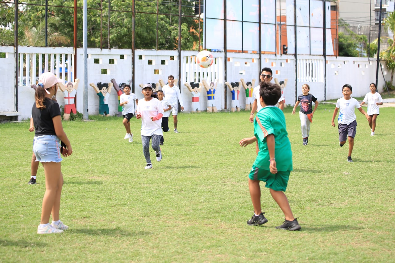 Al mismo tiempo, en la unidad deportiva Riviera Maya y en la de Puerto Maya de Puerto Aventuras, 317 y 45 menores respectivamente, realizan actividades como: basquetbol, natación, tenis, inclusive deportes como tiro con arco en el denominado curso Baaxlo’Ob Paalalo’Ob.