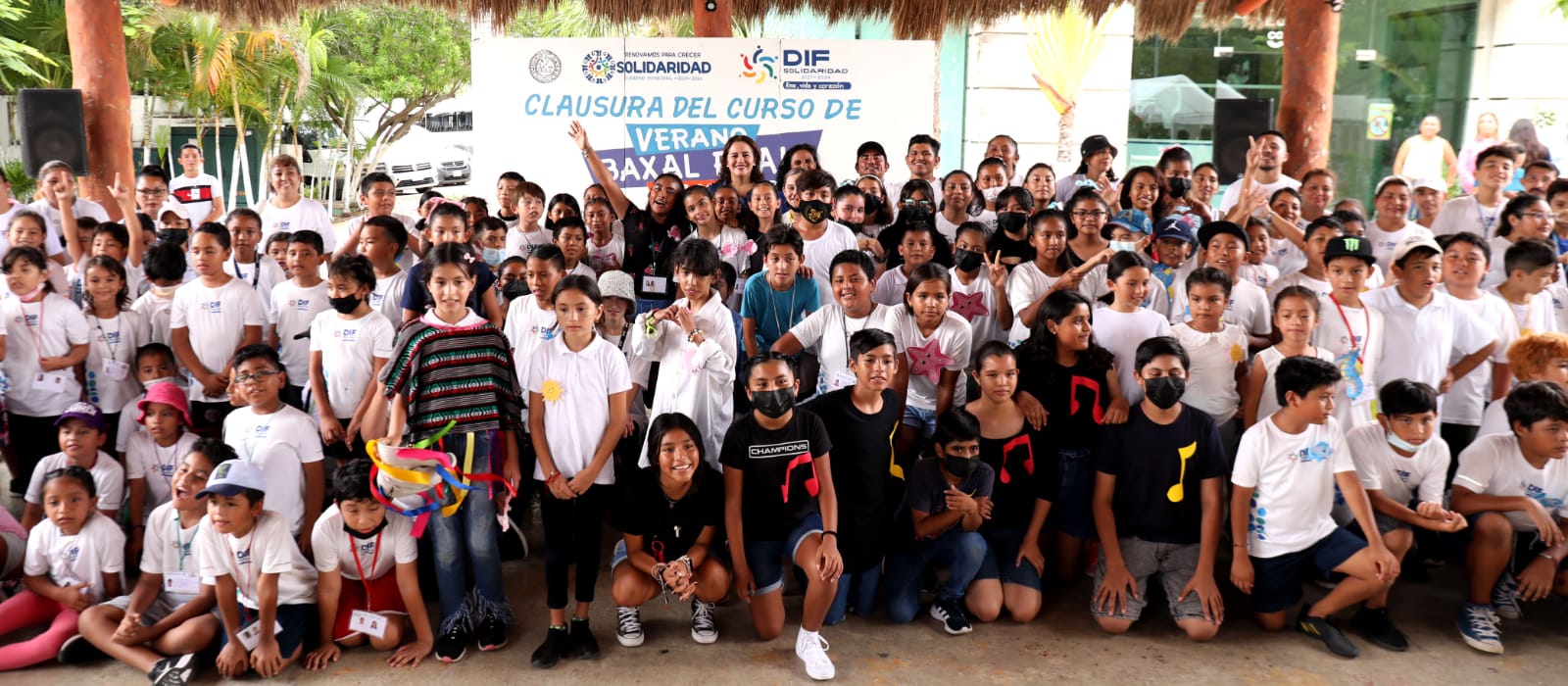 Playa del Carmen, Solidaridad, 18 de agosto del 2022.- Fue clausurado el curso de verano “Baxal Paal DIF 2022” con un festival cultural, artístico y deportivo, a cargo de las y los 180 niñas y niños participantes, en el que se fomentó el sano desarrollo de la infancia, como ha establecido el gobierno encabezado por la presidenta municipal Lili Campos.