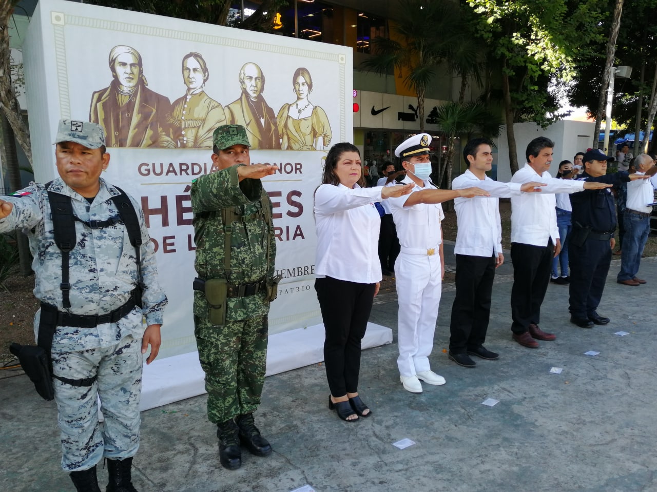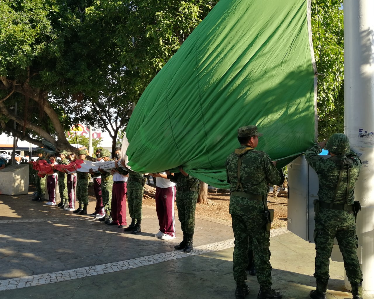 Cancún, Q.R., a 05 de septiembre de 2022.- Con el izamiento de la bandera tricolor ondeando en el asta del Parque del Crucero, autoridades municipales, estatales y federales, así como elementos del 64 Batallón de Infantería, alumnos de la Secundaria Técnica 111 y trabajadores de la Dirección General de Servicios Públicos, realizaron una guardia de honor a los Héroes de la Patria, en homenaje a hombres y mujeres que legaron sus vidas por crear un mejor México.
