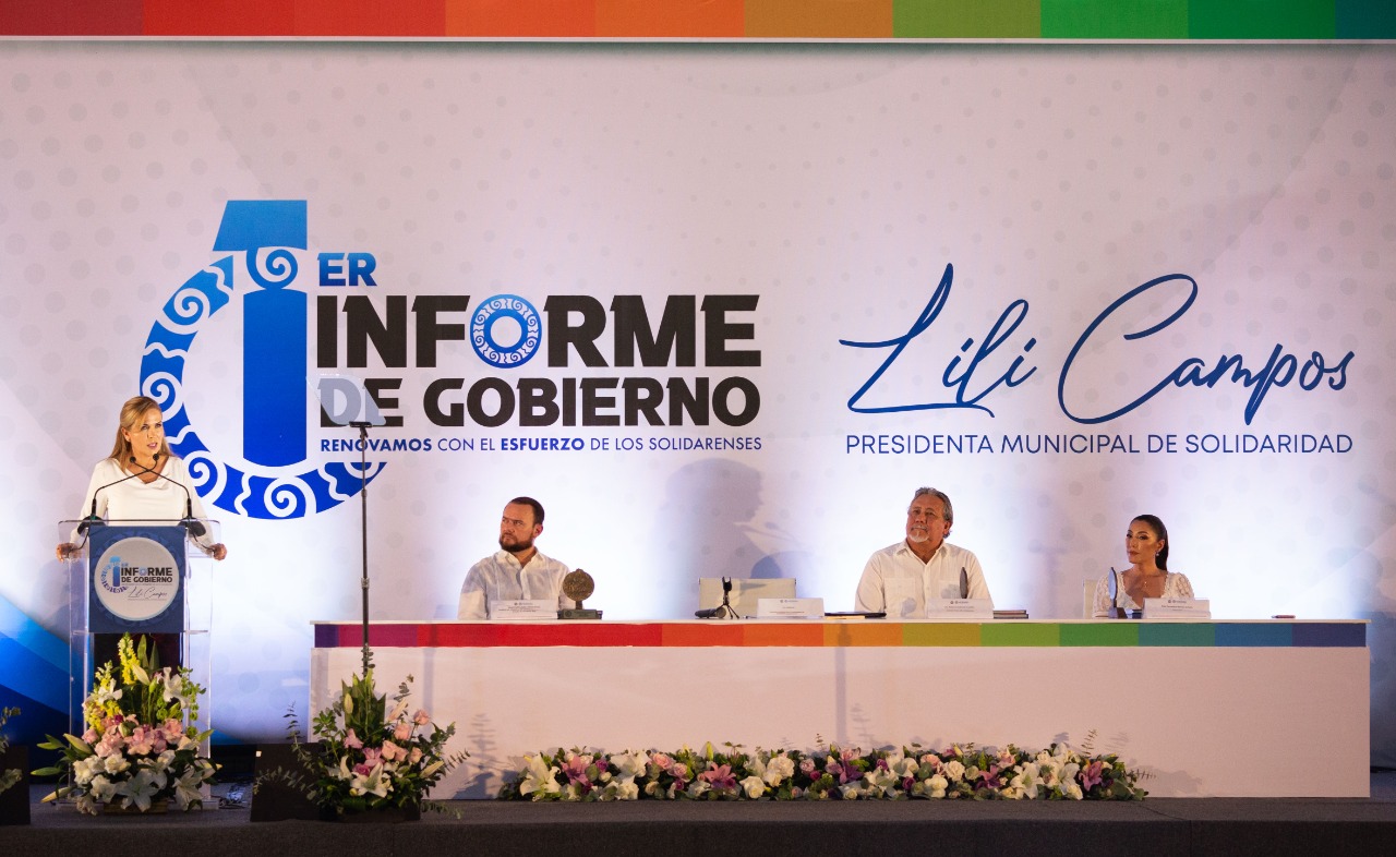 La presidenta municipal de Solidaridad rindió hoy el Primer Informe de Gobierno y convocó a los solidarenses a seguir trabajando juntos.