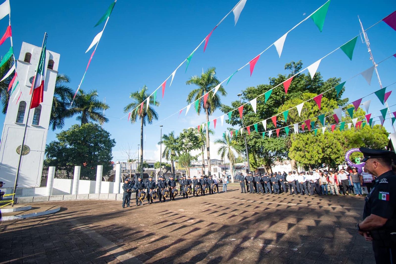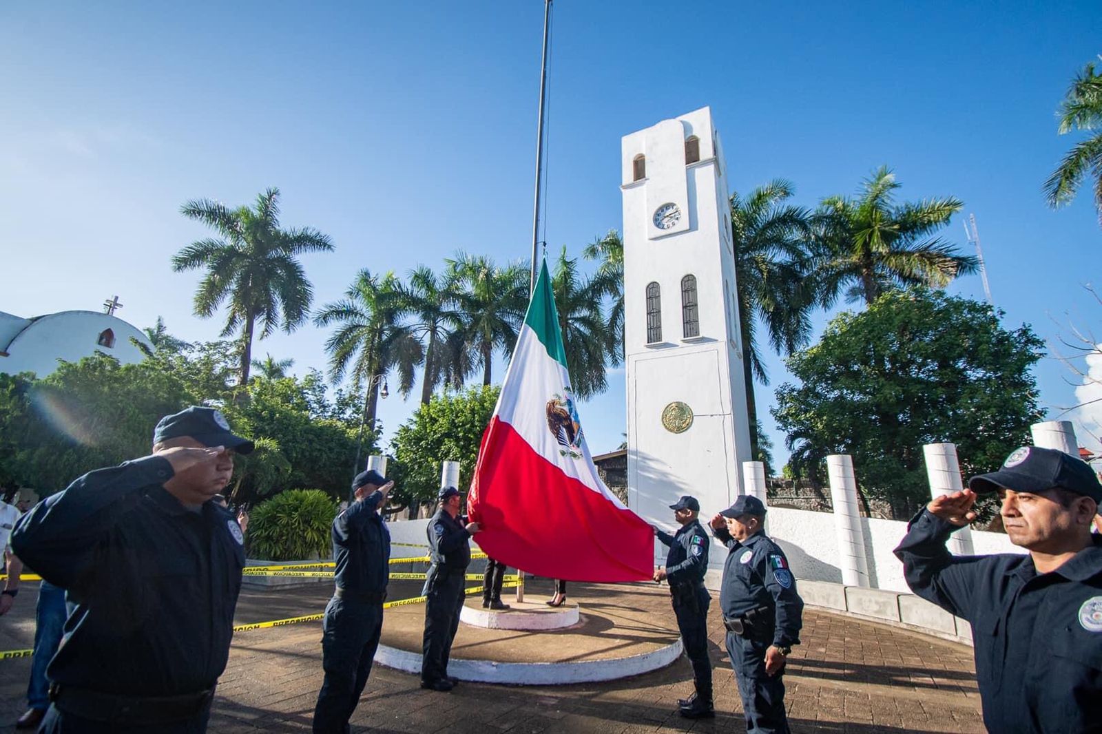 En el parque central, acompañada de colaboradores del Ayuntamiento y estudiantes , la alcaldesa rindió honores al lábaro patrio.