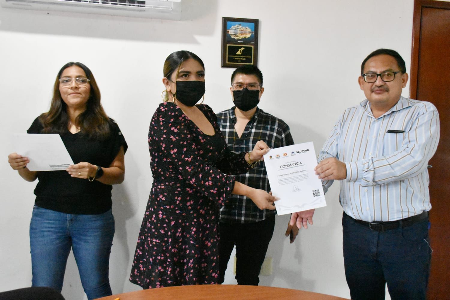 En la entrega de constancias estuvieron presentes el director de capacitación y cultura turística de SEDETUR, Fermín Carrillo Cupul; el Jefe del Departamento de Desarrollo Turístico, Denneric Polanco Galera; y personal de la dirección de turismo.