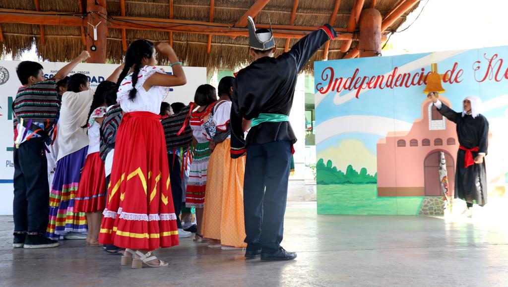 Playa del Carmen, Quintana Roo, a 23 de septiembre del 2022.- Un total de 36 niñas y niños del programa educativo 10-17 del Sistema para el Desarrollo Integral de la Familia (DIF) Solidaridad que preside Rosita Escobedo Campos, participaron en la obra de teatro y presentación musical “Mexicanísimo”, en la que revivieron pasajes de la lucha por la Independencia de México, en el marco de las celebraciones por el mes patrio.