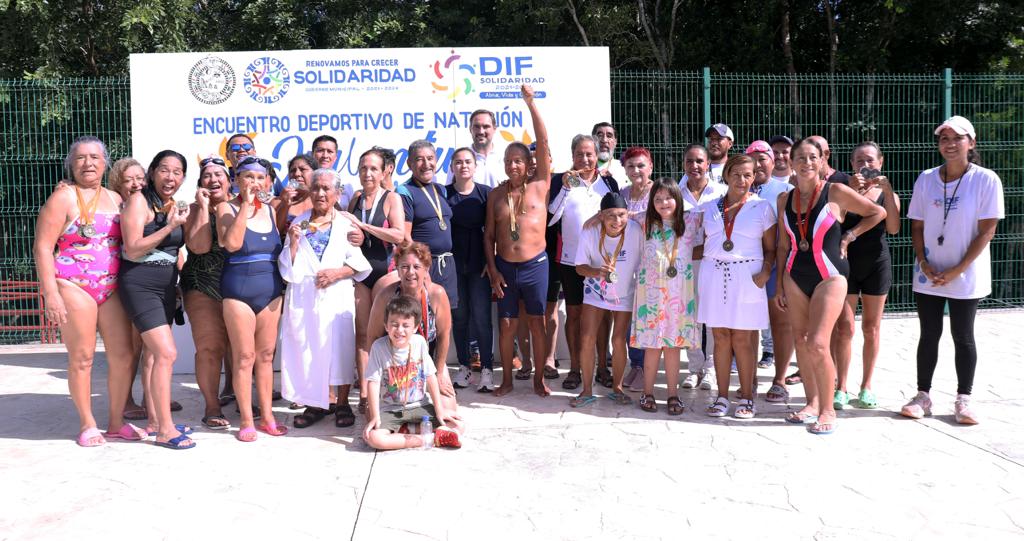 Playa del Carmen, Solidaridad, 24 de septiembre de 2022.- Con el objetivo de promover la salud y el bienestar de los adultos mayores, el DIF Solidaridad llevó a cabo el encuentro deportivo de natación “Juventud Acumulada”.