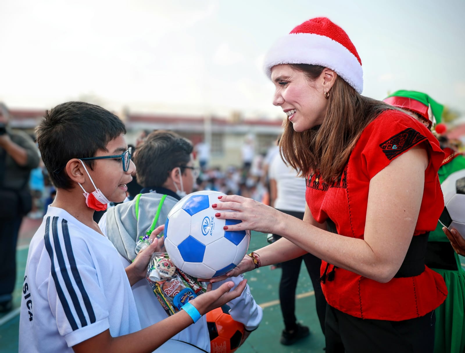 Previo al festejo de la Navidad y Fin de Año, Atenea Gómez, llevó un mensaje de esperanza y alegría a cientos de pequeñas y pequeños que cursan sus estudios en escuelas públicas del municipio.