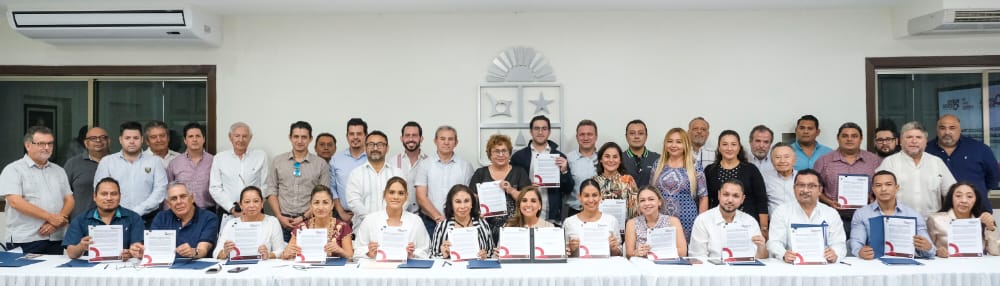Chetumal.- En el marco de la “Reunión de trabajo, Acuerdo por el ejercicio transparente y eficiente de los recursos públicos” empresarios del centro y sur del estado firmaron hoy con la gobernadora Mara Lezama Espinosa los acuerdos solidarios para sumarse a las acciones a fin de saldar la deuda económica y social del estado.
