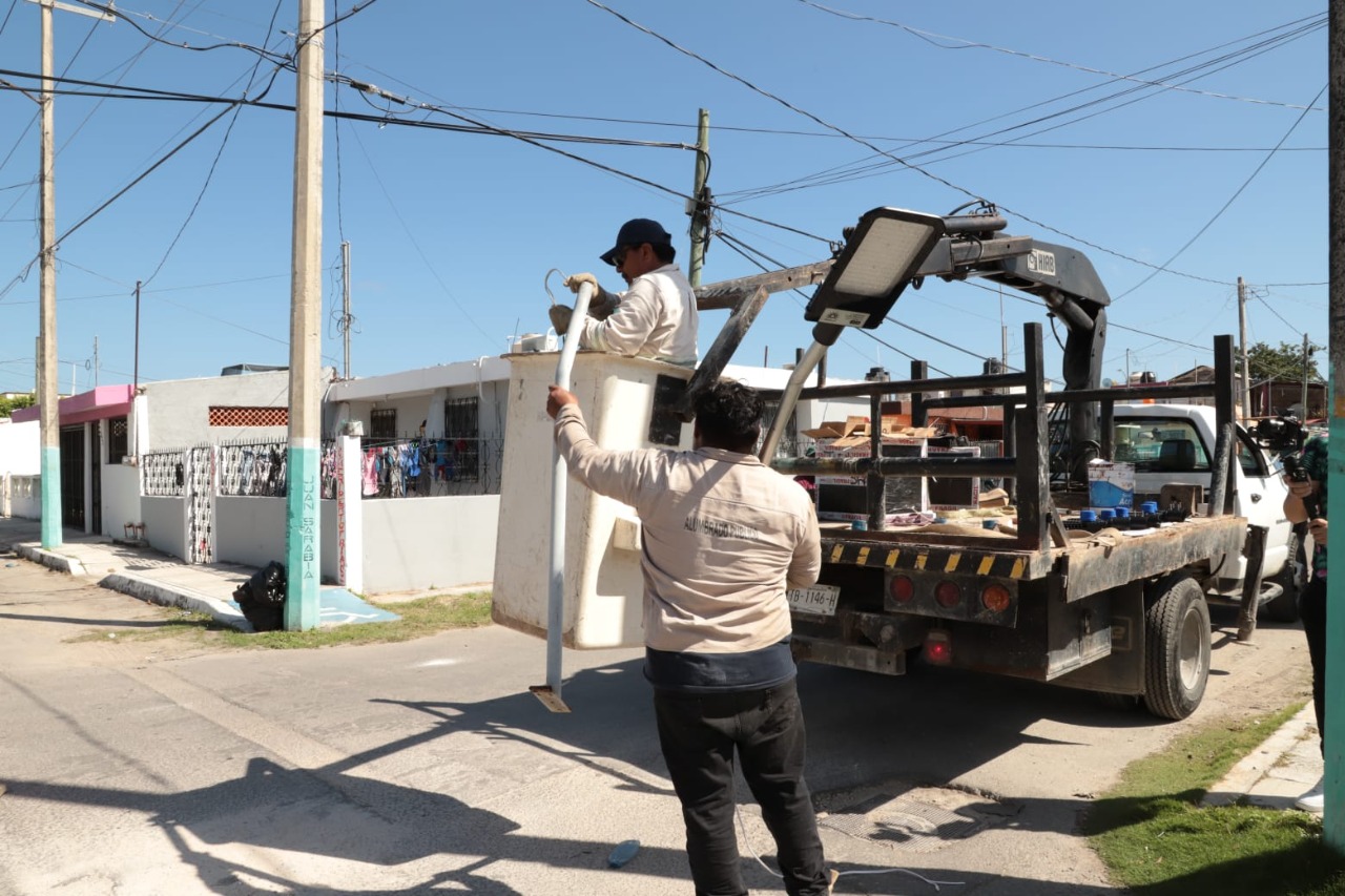 Chetumal, Q. Roo, a 14 de diciembre.- “Fue un compromiso que hicimos de iluminar, y estamos haciéndolo, hoy (miércoles) en la colonia Aarón Merino de la ciudad capital, en la calle Heriberto Frías con Juan Sarabia. Hacia el fin de esta semana deberemos de tener al 100 por ciento iluminadas las calles de esta parte urbana”, informó la presidenta municipal de Othón P. Blanco, Yensunni Martínez Hernández, al anunciar las acciones en mención.