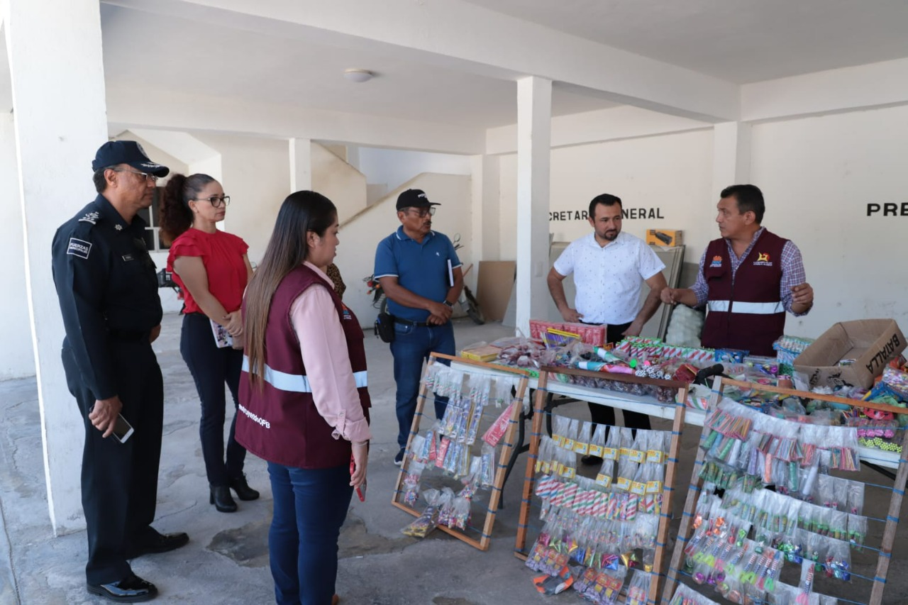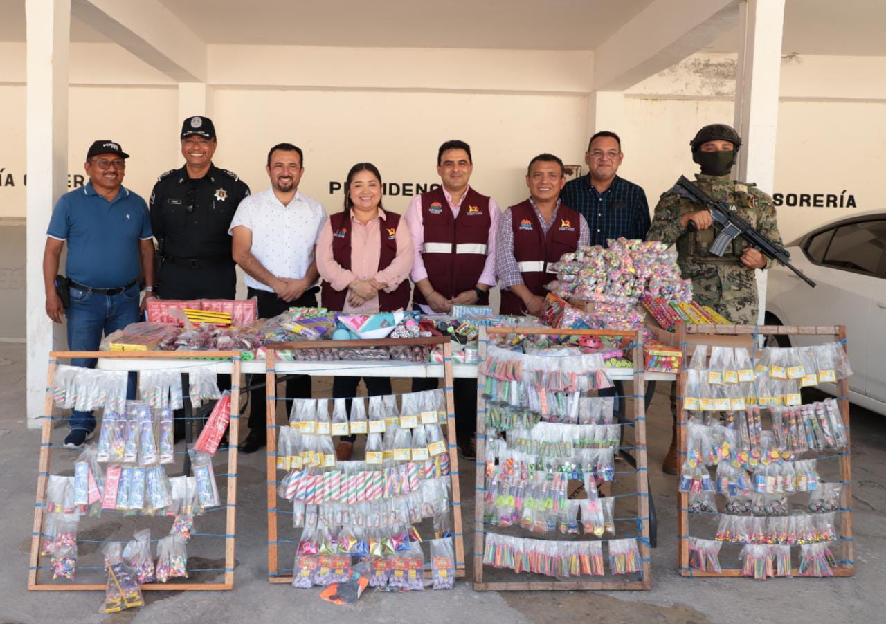 “Con la denuncia anónima de ustedes, dimos con lugares donde vendían pirotecnia explosiva, incluso estos sitios sí tenían permisos de venta pero era para juguetería pirotécnica que ya habíamos explicado, es la autorizada; las acciones fueron realizadas este miércoles y jueves en trabajo coordinado”, detalló la presidenta municipal.