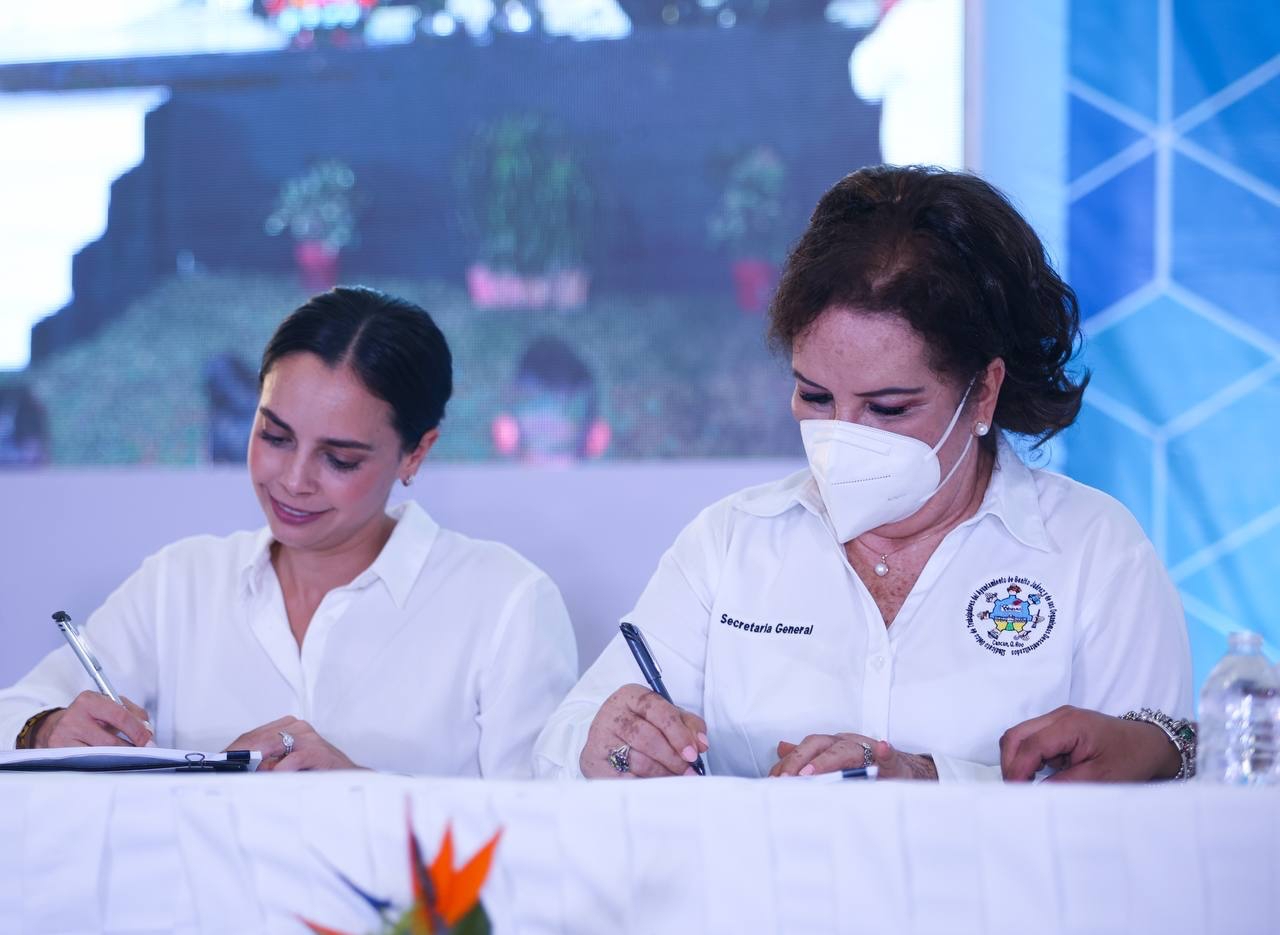 Cancún, Q.R., a 19 de diciembre de 2022.- La presidenta municipal de Benito Juárez, Ana Patricia Peralta, firmó junto a la secretaria general del Sindicato Único de Trabajadores al Servicio del Ayuntamiento de Benito Juárez y de sus Organismos Descentralizados (SUTSBJYOD), Delia Alvarado, la actualización de las Condiciones Generales de Trabajo de dicho sindicato, cuyo objetivo es brindar circunstancias y herramientas adecuadas para que los colaboradores del Ayuntamiento puedan ejercer sus actividades de la mejor manera, en beneficio de ellos y los cancunenses.