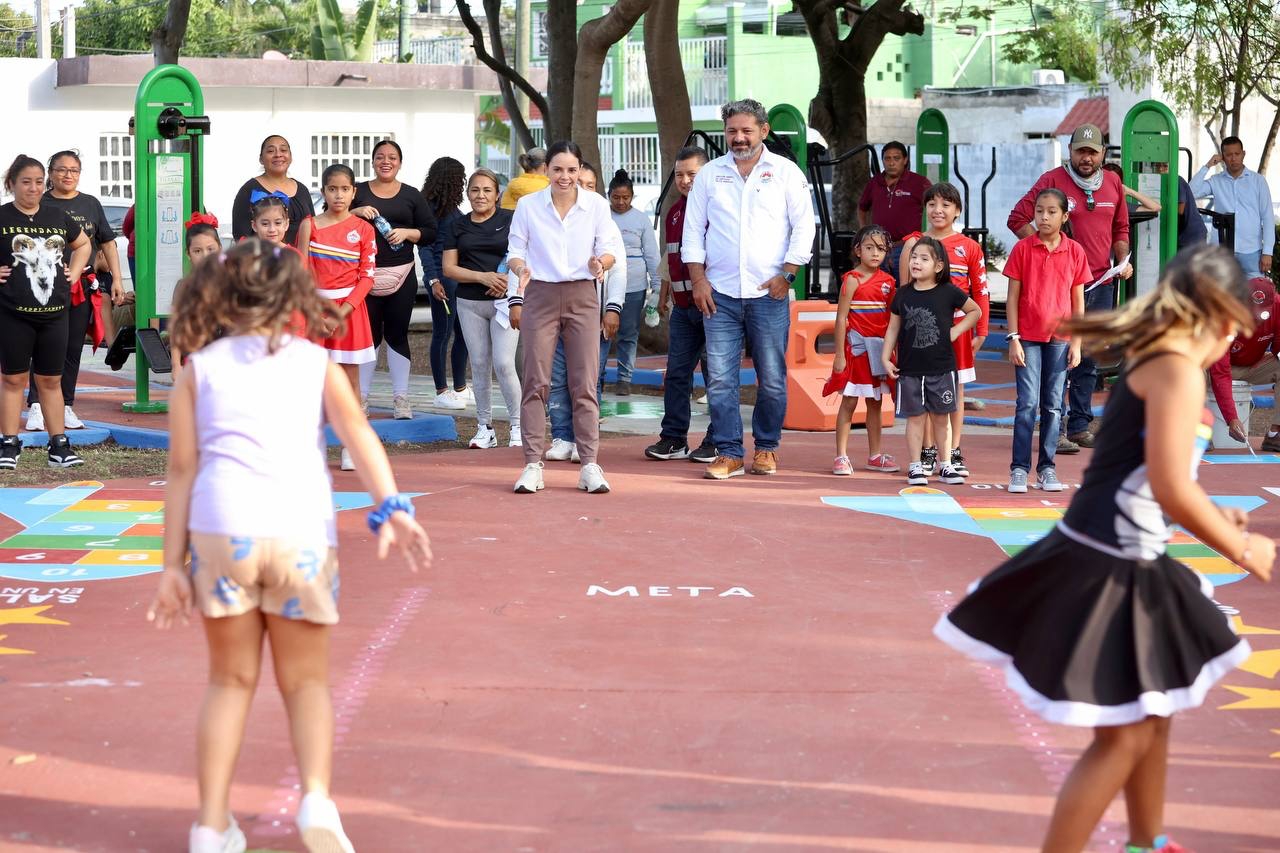 En su caminar por la zona, la Presidenta Municipal, al llegar al parque dialogó con niñas, niños y adolescentes que ya disfrutaban del área rehabilitada, en las que realizaron actividades deportivas y artísticas, desde activación física, práctica de baile y ejercicio al aire libre.