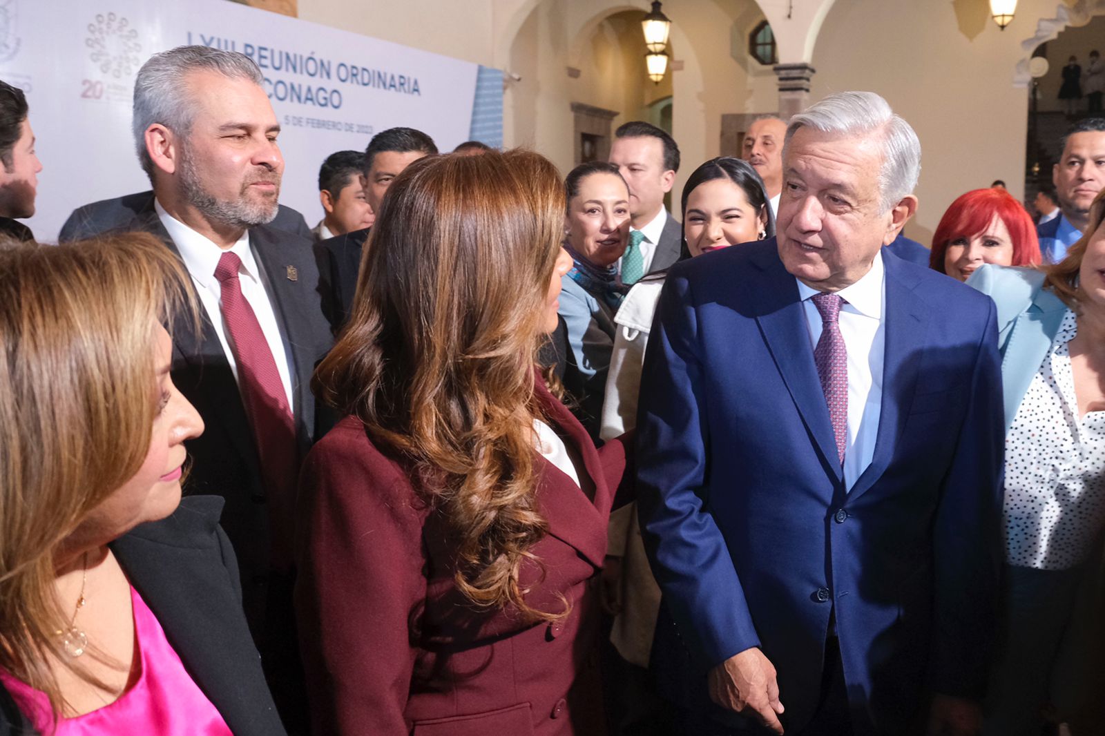 “Junto con el presidente Andrés Manuel López Obrador hacemos sinergia con las y los gobernadores del país, con el objetivo claro de consolidar la Cuarta Transformación y llevar bienestar, prosperidad, justicia social y seguridad para nuestro pueblo” añadió la titular del Ejecutivo.