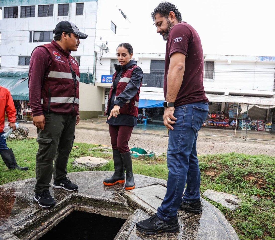 La Primera Autoridad Municipal, acompañada del director de Servicios Públicos, José Antonio de la Torre Chambe, supervisó la limpieza del pozo de captación ubicado sobre la avenida Tankah en la Supermanzana 28, verificando su correcto funcionamiento, para la el libre tránsito de las familias de la zona y los ciudadanos que circulan por la vialidad.