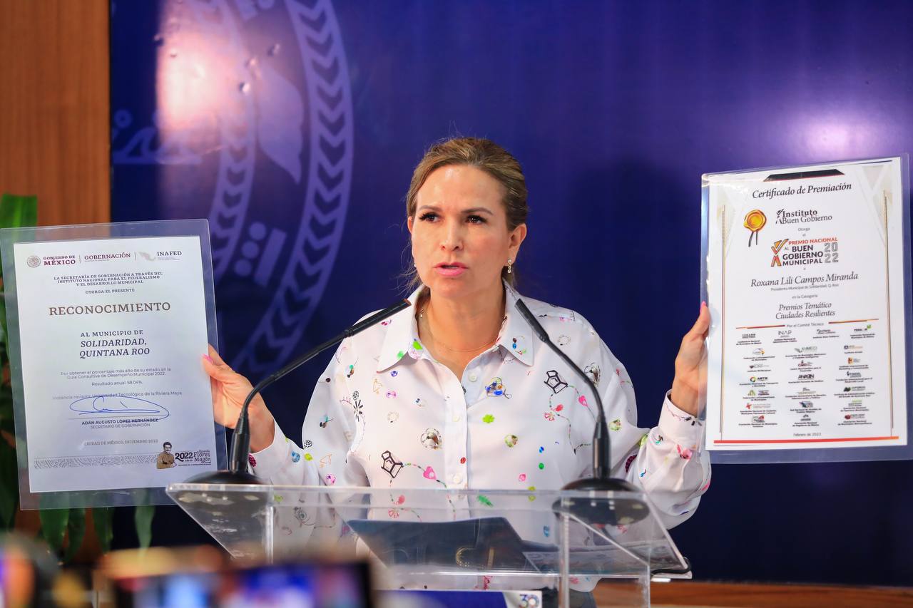 Por otra parte, la edil compartió que los reconocimientos otorgados para Solidaridad son de todos y cada uno de los que conforman el gobierno municipal y de las y los solidarenses. Su importancia, es por quien los otorga, por sus evaluaciones objetivas, como lo es el premio por parte del Instituto Nacional de Administración Pública (INAP), otro reconocimiento es otorgado por el por el gobierno federal a través del Instituto Nacional para el Federalismo y Desarrollo Municipal (INAFED), “lo que nos compromete a seguir trabajando para que nos vaya bien a todos y todas”.
