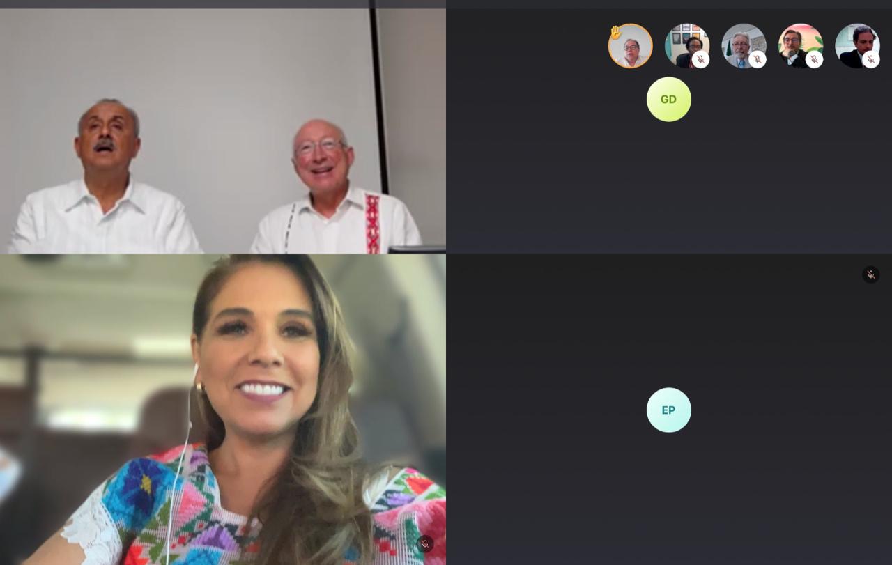 Chetumal.- La gobernadora Mara Lezama Espinosa participó en un encuentro virtual con el embajador Ken Salazar en seguimiento de los encuentros entre los presidentes de México, Andrés Manuel López Obrador, y de Estados Unidos de América, Joe Biden, y en el marco del Encuentro de Gobernadores del Sur-Sureste de México.
