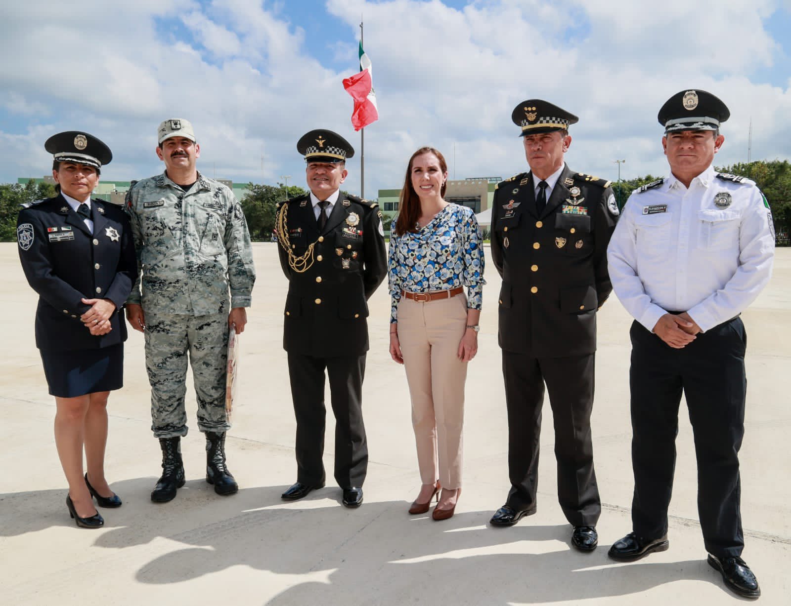 Isla Mujeres, Quintana Roo, 19 de febrero de 2023. – La presidenta municipal de Isla Mujeres, Atenea Gómez Ricalde, asistió y acompañó a la Gobernadora, Mara Lezama y a las fuerzas armadas a la conmemoración del CX aniversario del Día del Ejército y a la ceremonia de toma de Posesión y Protesta de Bandera del Comandante de la 10a. Brigada de la Policía Militar.