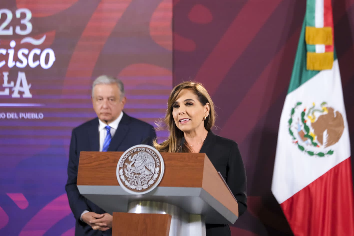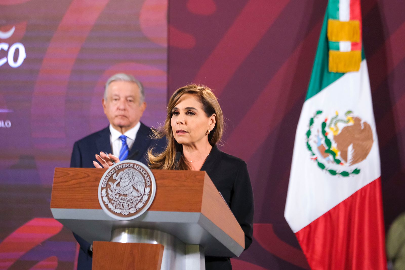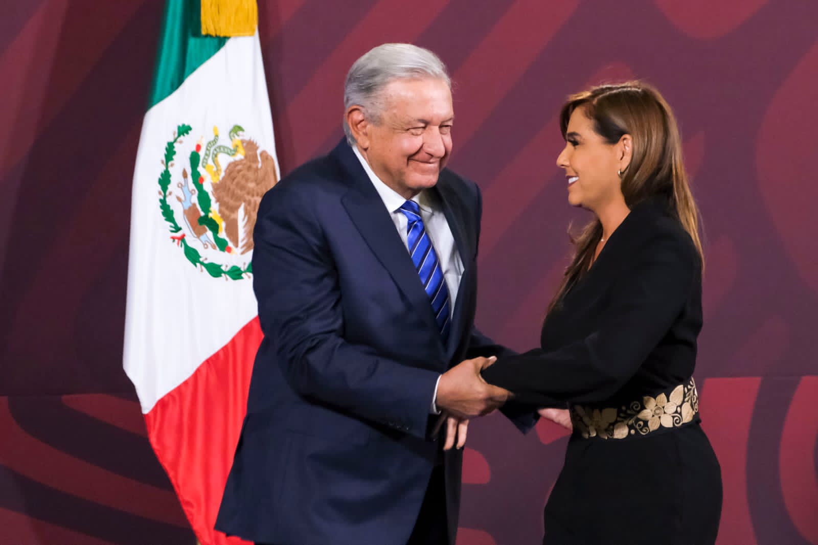 La gobernadora de Quintana Roo participa en la conferencia matutina del Presidente Andrés Manuel López Obrador y destaca beneficios del Tren Maya para la gente.
