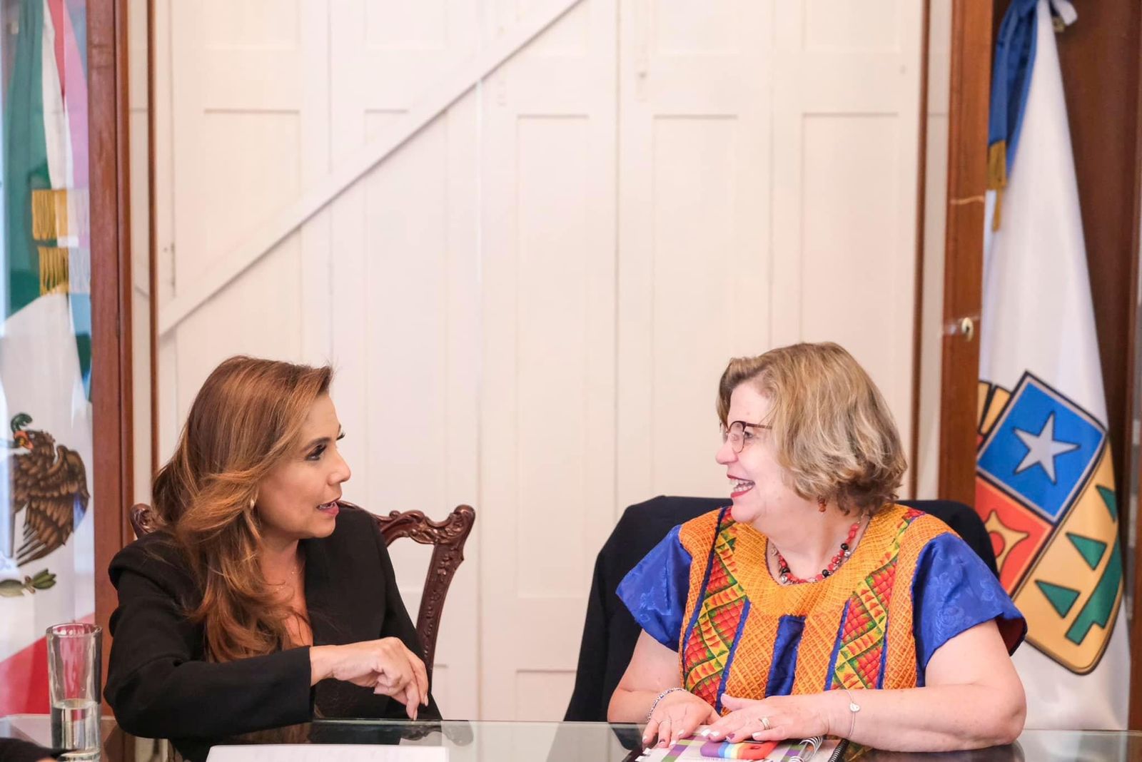 Ciudad de México.-  La gobernadora de Quintana Roo Mara Lezama Espinosa se reunió con la titular de INMUJERES, Nadine Gasman Zylbermann, para trabajar coordinadas en impulsar acciones para que las instancias de las mujeres en las entidades federativas formen parte de las mesas de paz y seguridad, que puedan tener voz e impulsar la perspectiva de género en la materialización de la Estrategia de Paz y Seguridad en el país, desde la Comisión de Igualdad de la Conferencia Nacional de Gobernadores (Conago).