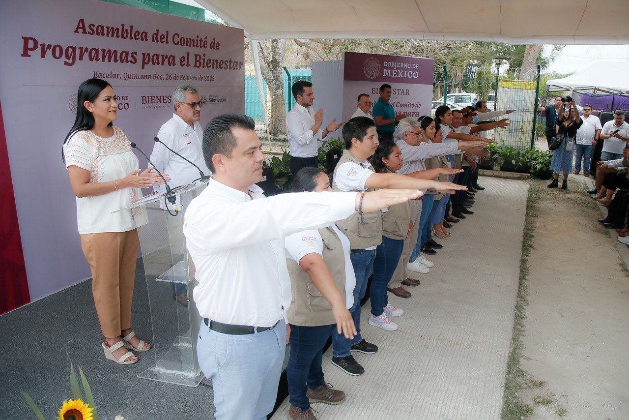 Bacalar.- Para garantizar que los Programas de Bienestar en Quintana Roo beneficien a la población de forma directa y sin intermediarios, como es la visión y el compromiso de la gobernadora Mara Lezama Espinosa, hoy rindió protesta el Comité de Programas para el Bienestar, en asamblea encabezada por la secretaria de Bienestar Federal, Ariadna Montiel Reyes, acompañada del secretario de Desarrollo Social (Sedeso), Pablo Bustamante Beltrán y autoridades de los tres órdenes de gobierno.