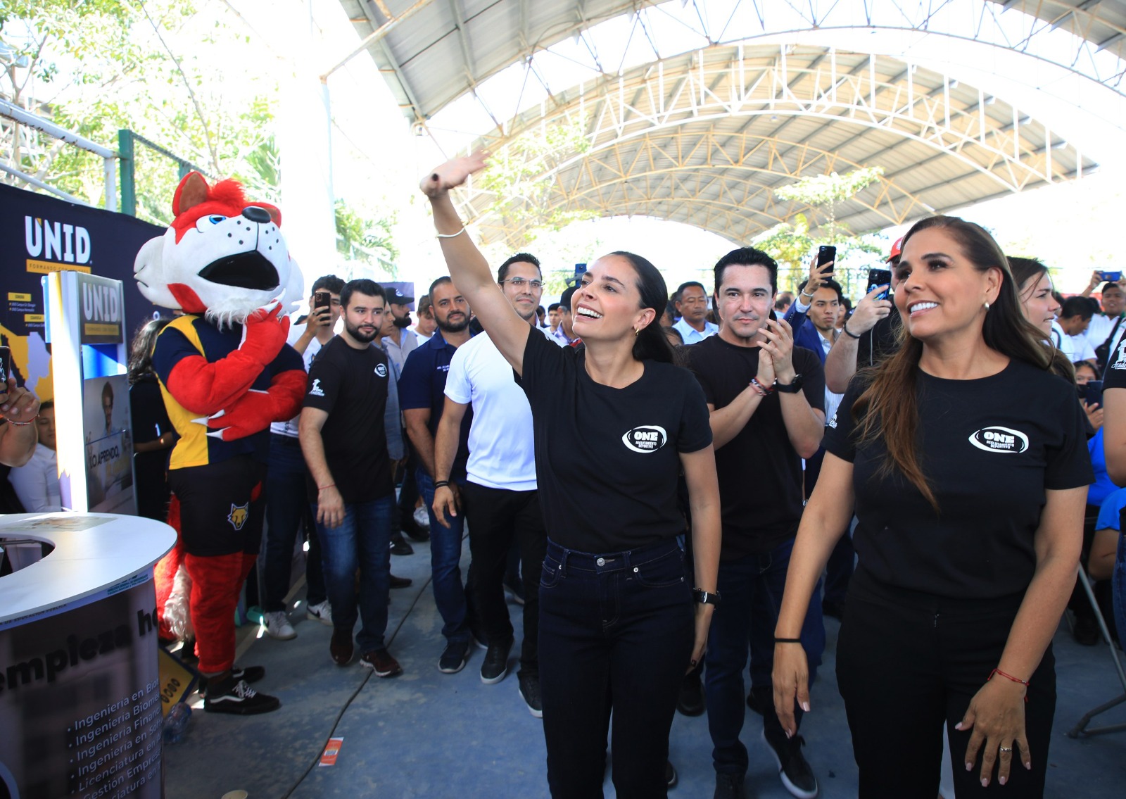 Cancún, Q.R., 04 de marzo de 2023.- Junto a la gobernadora Mara Lezama, la Presidenta Municipal, Ana Patricia Peralta, encabezó la primera Feria Académica 2023 y la cuarta edición del evento deportivo Pro-Day, que se realiza este fin de semana para acercar a la juventud cancunense la amplia oferta académica y oportunidades de desarrollar su carrera deportiva en un solo lugar.