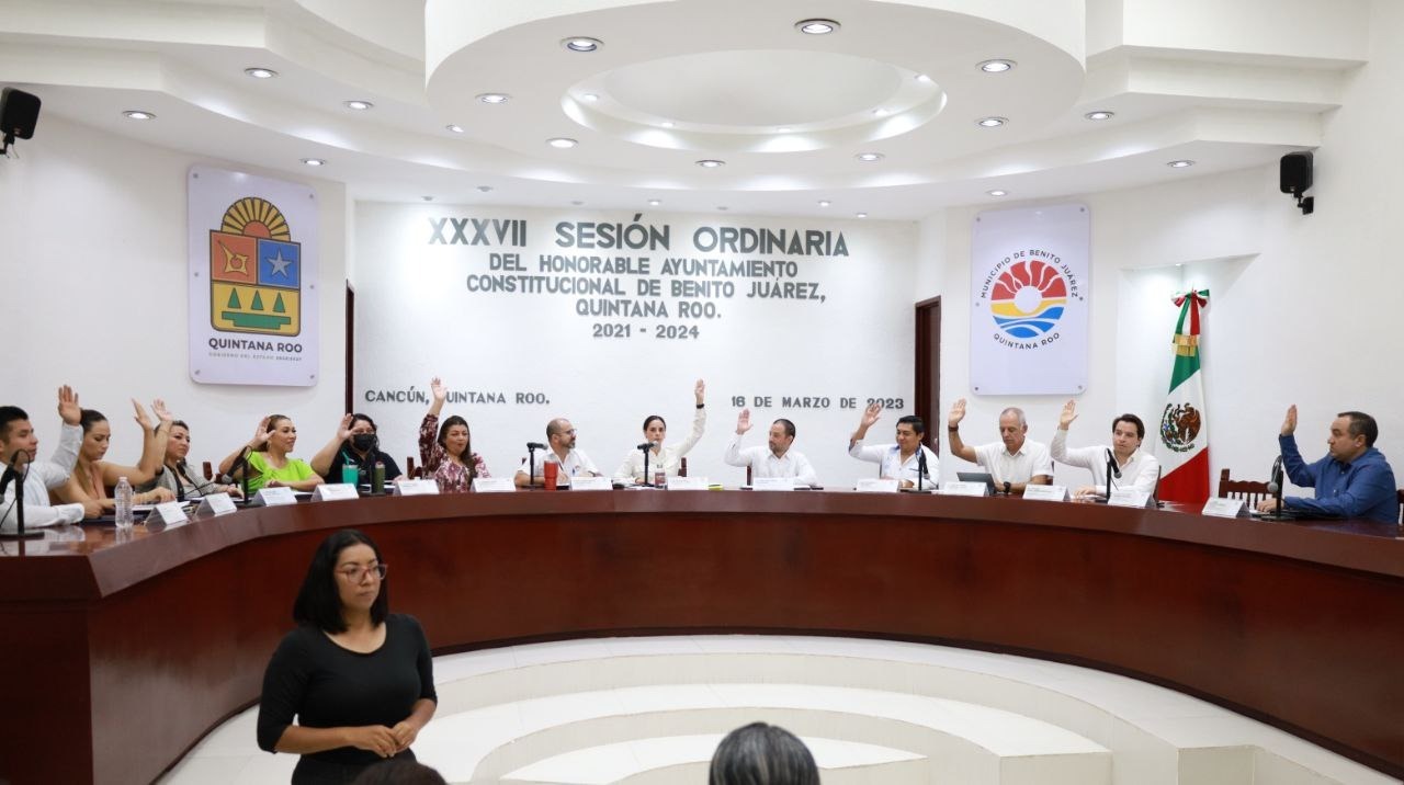 Cancún, Q.R., a 16 de marzo de 2023.- Luego de encabezar la Trigésima Séptima Sesión Ordinaria de Cabildo del Ayuntamiento de Benito Juárez, la Presidenta Municipal, Ana Patricia Peralta, anunció que las dos primeras colonias que se verán beneficiadas con el “Programa de Regularización para el Bienestar Patrimonial”, serán: Sac-be y La Noria, de un total de 12 sitios con esa condición que se prevé ordenar este año.