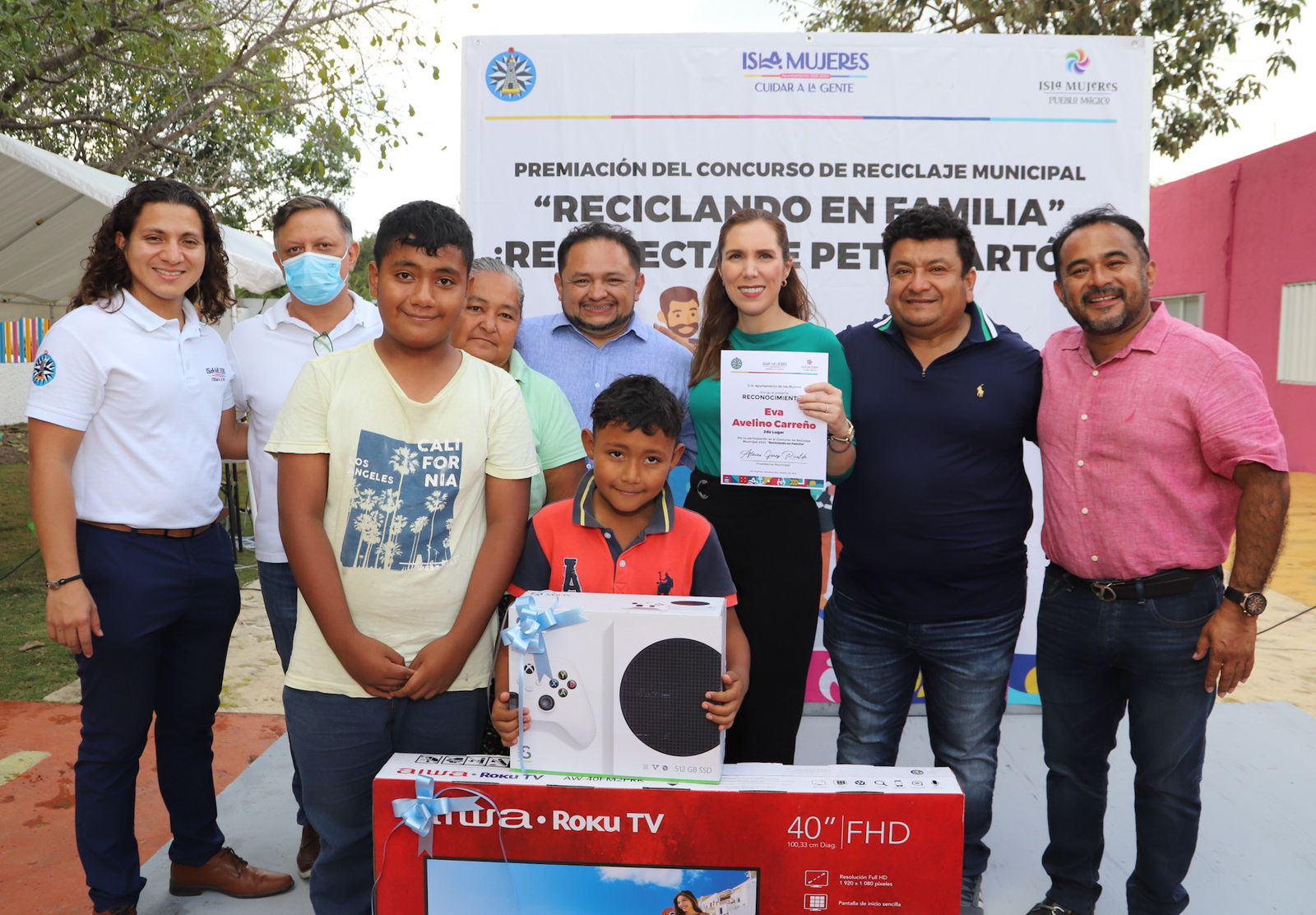 La alcaldesa entregó premios a los tres primeros lugares de cada modalidad del concurso (cartón y PET), recolectando el primer lugar en la categoría de cartón 350 kilogramos y en la de PET 269 kilogramos siendo acreedores a estufas, lavadoras, pantallas de televisión y Laptops.