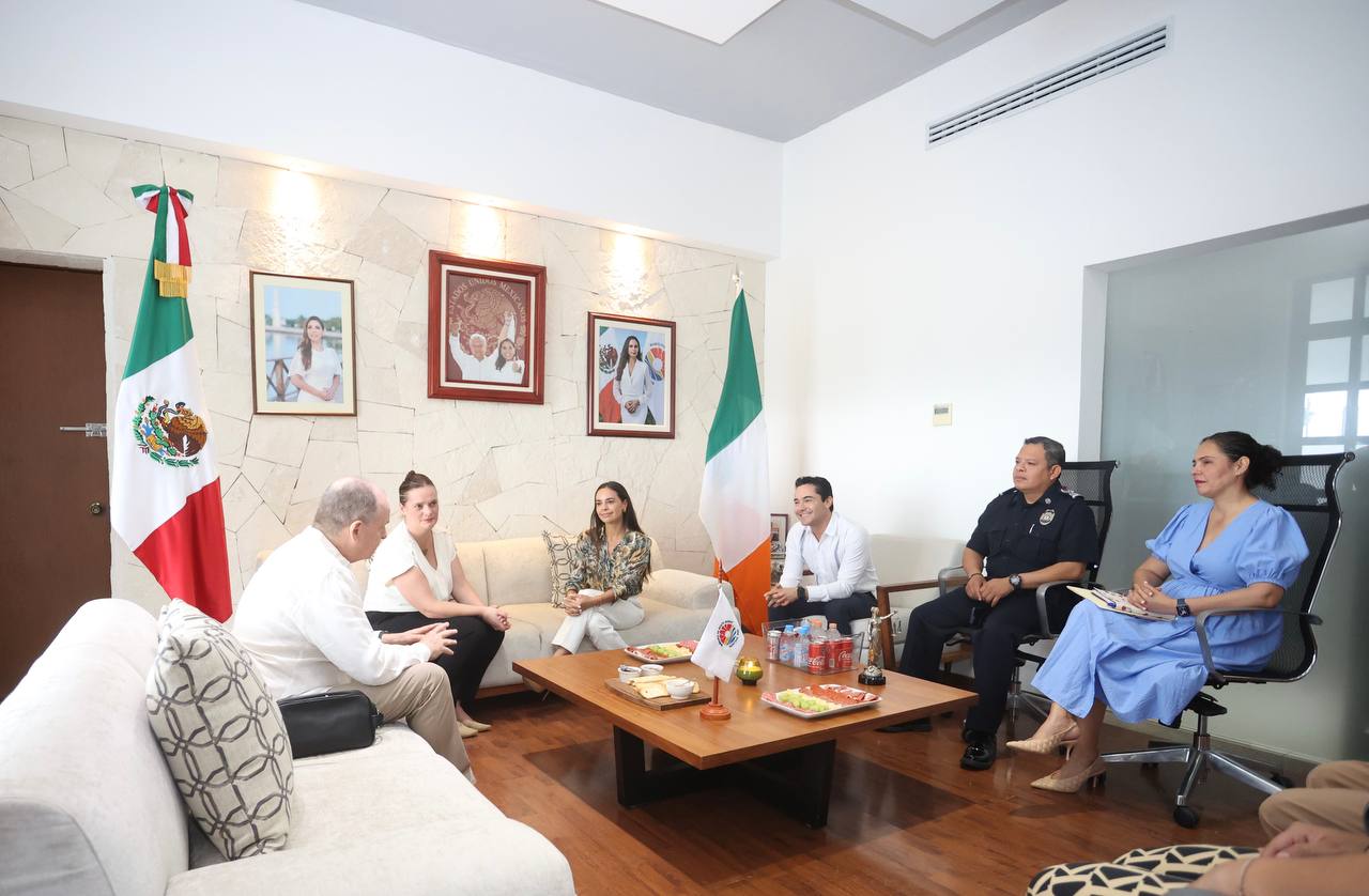 En la reunión de trabajo realizada en el Palacio Municipal estuvieron presentes también el cónsul honorario de Irlanda en Quintana Roo, Anthony Leeman; el presidente de la Comisión de Turismo, Ecología y Ambiente, Eduardo Kuyoc Rodríguez, el secretario municipal de Turismo, Juan Pablo de Zulueta Razo; la directora de Relaciones Públicas y Asuntos Internacionales, Aurora de los Ángeles Aguilar Rivero; el Secretario de Seguridad Pública y Tránsito Municipal, José Pablo Mathey Cruz y la Secretaria Particular, Berenice Polanco Córdova.