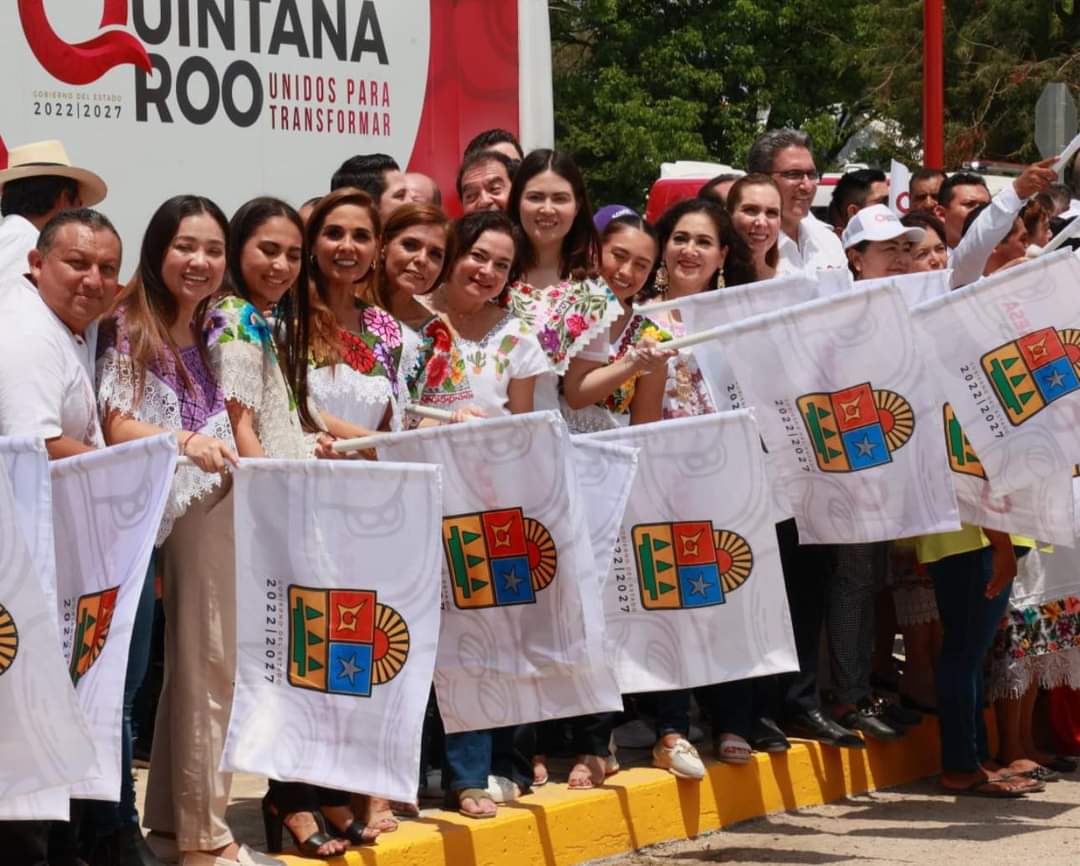 Isla Mujeres, Quintana Roo, 12 de abril de 2023.- En una suma de esfuerzos y trabajo conjunto, la presidenta municipal de Isla Mujeres, Atenea Gómez Ricalde, acompañó a la Gobernadora, Mara Lezama Espinosa, en el banderazo de inicio del programa «Salud para Todas y Todos» en la comunidad de Chumpón, Felipe Carrillo Puerto.