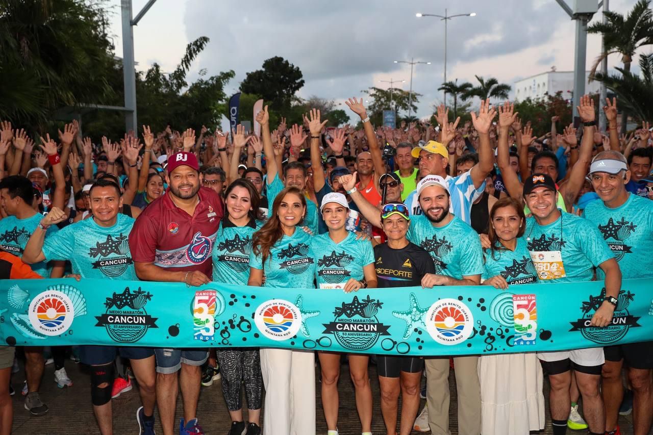 Cancún.- La gobernadora Mara Lezama Espinosa dio el banderazo de arranque del Medio Maratón Cancún 2023 con lo que se promueve el turismo deportivo y el desarrollo integral ya que es la mejor herramienta para transformar la vida de las personas y generar bienestar para la comunidad.