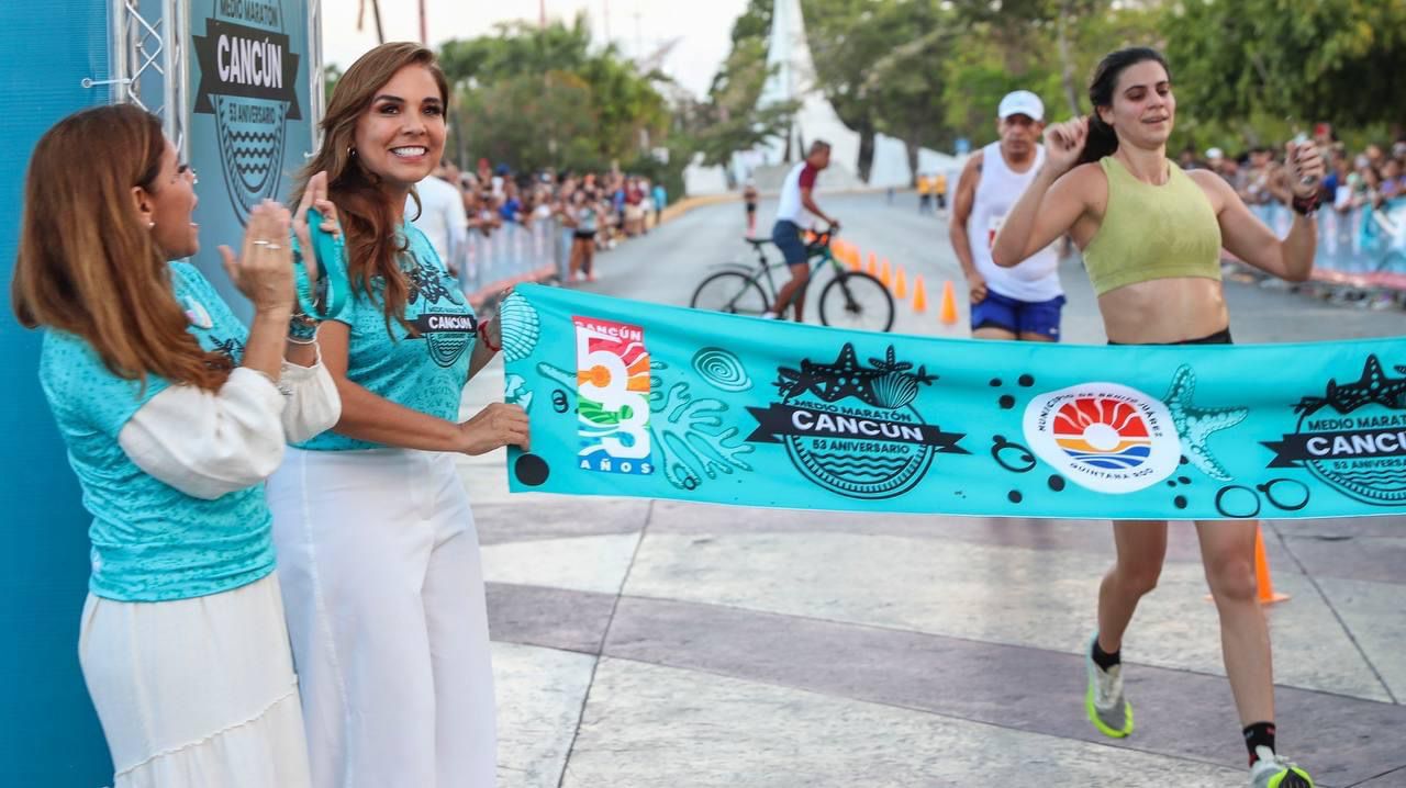 La Gobernadora de Quintana Roo consideró que el año próximo este medio maratón, que nos demuestra el liderazgo de este destino favorito de millones de visitantes, salga desde el puente de la laguna Nichupté, hoy en construcción y que será una obra simbólica de Cancún.
