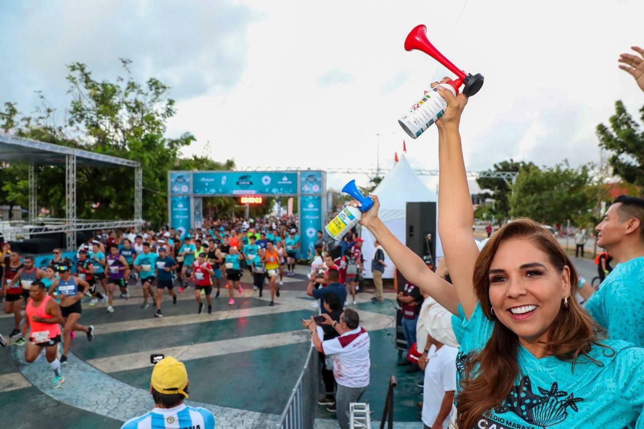 Cancún.- La gobernadora Mara Lezama Espinosa dio el banderazo de arranque del Medio Maratón Cancún 2023 con lo que se promueve el turismo deportivo y el desarrollo integral ya que es la mejor herramienta para transformar la vida de las personas y generar bienestar para la comunidad.