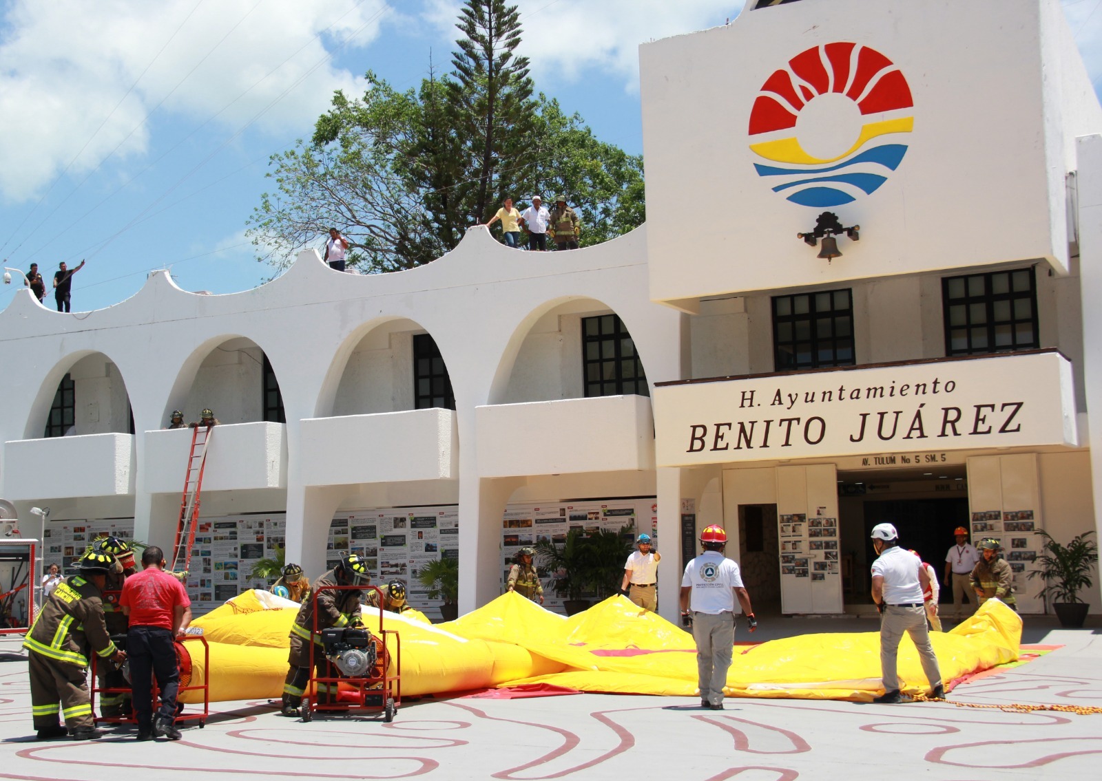 Cancún, Q.R., a 19 de abril de 2023.- En el marco del Día Nacional de Protección Civil, el gobierno municipal de Benito Juárez, que encabeza la Presidenta Municipal, Ana Paty Peralta, se sumó al Simulacro Nacional de Protección Civil 2023, con un ejercicio en el Palacio Municipal, teniendo como resultado “saldo blanco” gracias a la participación de colaboradores y elementos de seguridad, quienes demostrarnos sus habilidades para la protección y salvamento de personas.