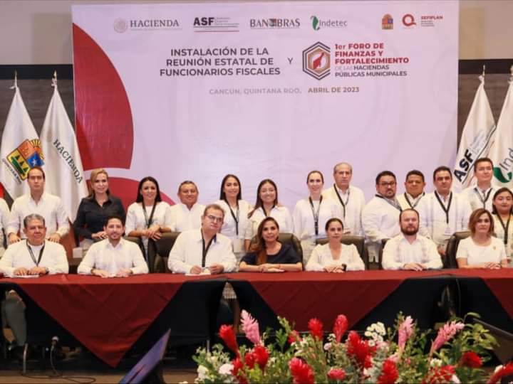 instalación de la Reunión Estatal de Funcionarios Fiscales y Primer Foro de Finanzas y Fortalecimiento de las Entidades Municipales, que encabezó la Gobernadora de Quintana Roo, Mara Lezama y Eugenio Renoir Baca Rivera, titular de la Unidad de Coordinación con Entidades Federativas (UCEF) de la Secretaría de Hacienda y Crédito Público federal.