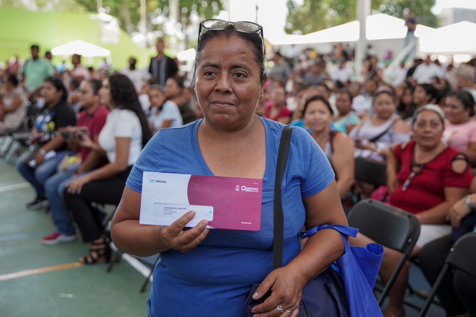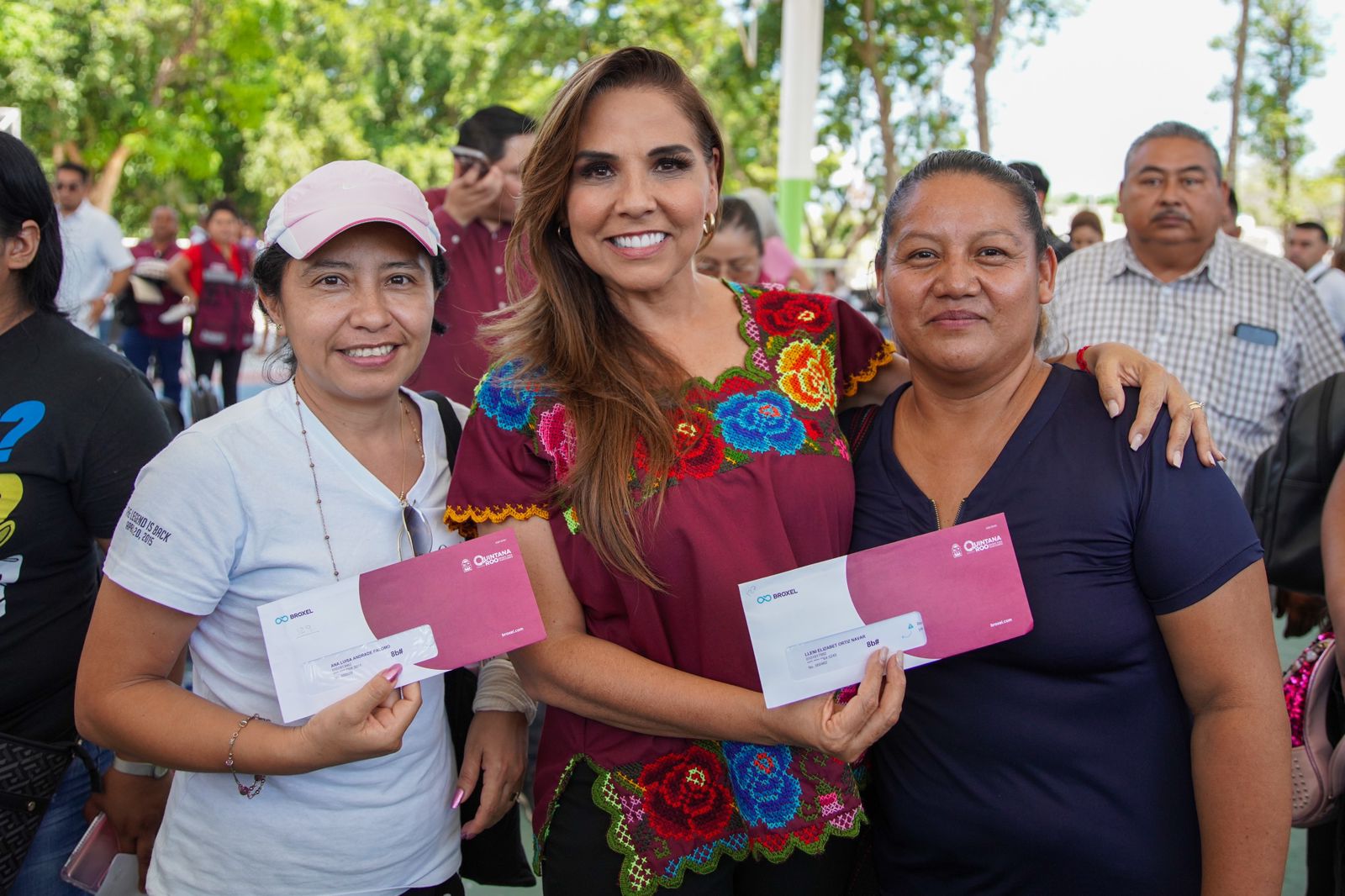 En Puerto Morelos, la gobernadora de Quintana Roo entregó tarjetas a beneficiarias del programa que llega a los 11 municipios.