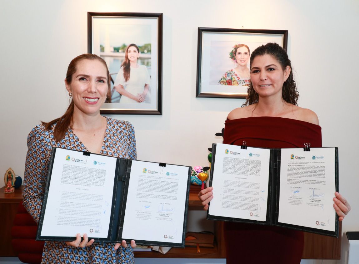 Isla Mujeres, Quintana Roo, 21 de abril de 2023.- La presidenta municipal de Isla Mujeres, Atenea Gómez Ricalde y la Secretaria del Trabajo y Previsión Social del Gobierno de Quintana Roo, Flor Ruiz Cosío, firmaron el Convenio de Colaboración para la Integración de la Comisión Municipal para la Prevención y Erradicación del Trabajo Infantil y Protección de los Adolescentes Trabajadores en la Oficina de Presidencia del Ayuntamiento de Isla Mujeres.