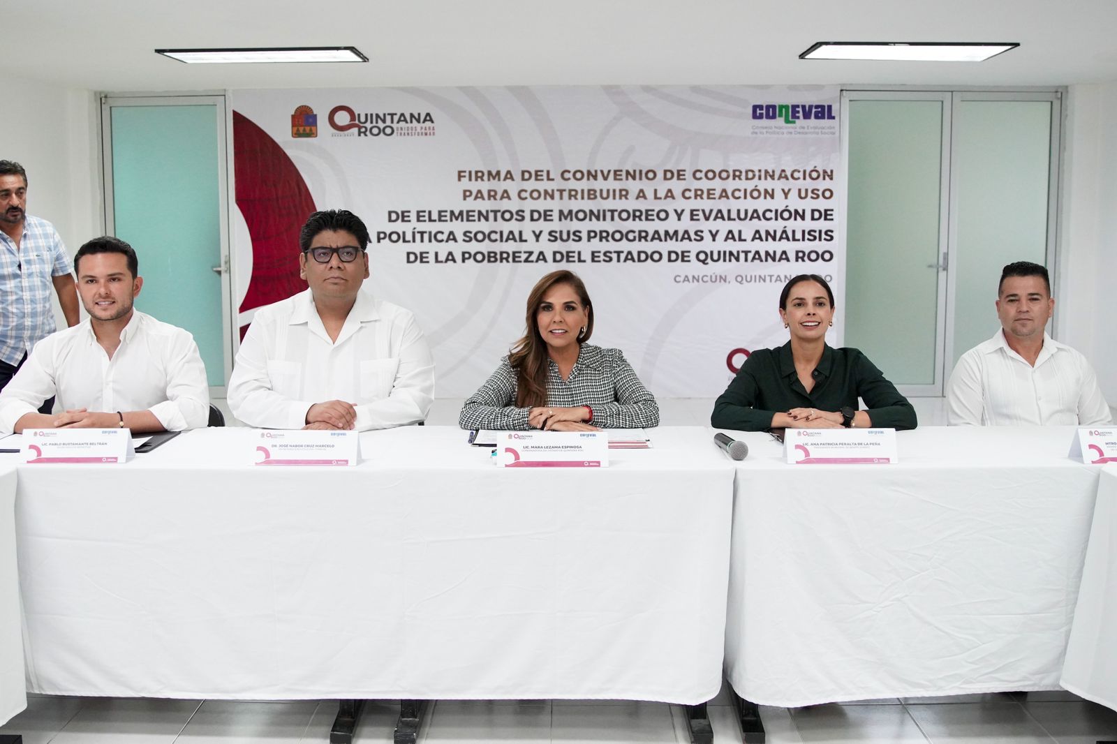 A través de este convenio, acción que se suma al Nuevo Acuerdo por el Bienestar y Desarrollo de Quintana Roo, se brindará asesoría en el diseño y aplicación del modelo de monitoreo. Asimismo, contribuirá en la formación de recursos humanos para impulsar el análisis de la pobreza, el monitoreo y la evaluación estatal.