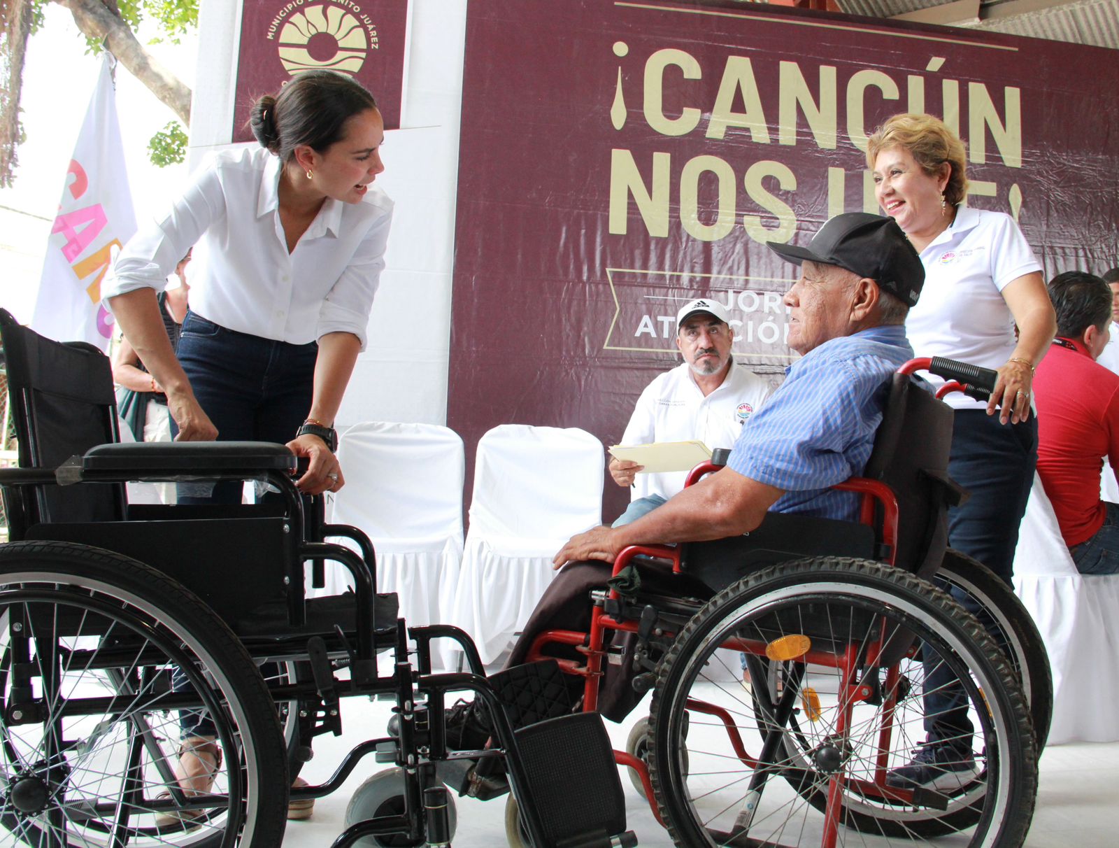 En continuidad a las gestiones de los cancunenses, la Presidenta Municipal atendió personalmente a las personas mediante las audiencias públicas para dar respuesta a sus demandas, y muestra de ello, es la entrega inmediata de una silla de ruedas a un adulto mayor; haciendo hincapié en el lineamiento de trabajar con el Nuevo Acuerdo por el Bienestar y Desarrollo, impulsado por la gobernadora Mara Lezama, con el fin de construir un Cancún moderno, nuevo y renovado que necesita la participación y apoyo de las y los cancunenses.