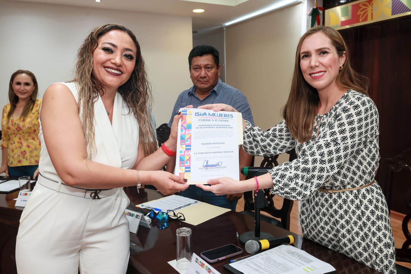 Es así, que Atenea Gómez Ricalde nombró y tomó protesta a Flor Cecilia Narváez Segovia como nueva Tesorera Municipal, a Karla Jazmín García Velázquez como directora general del Sistema DIF de Isla Mujeres y a José Faustino Uicab Alcocer como nuevo director de Ingresos.