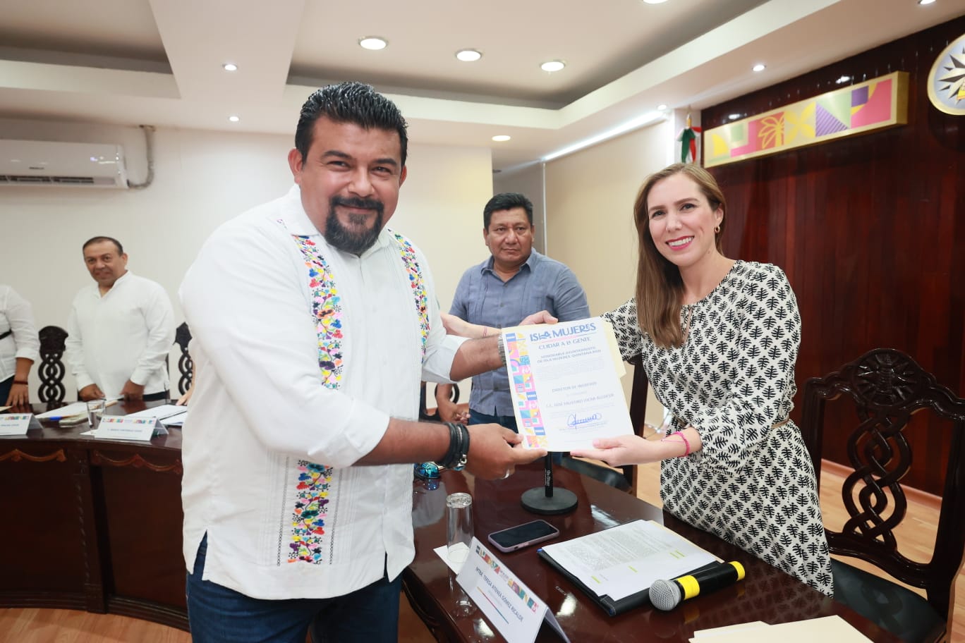 Isla Mujeres, Quintana Roo, 28 de abril de 2023.- La presidenta municipal de Isla Mujeres, Atenea Gómez Ricalde, encabezó la 37a. Sesión Ordinaria del Honorable Ayuntamiento de Isla Mujeres en la Sala de Cabildo.