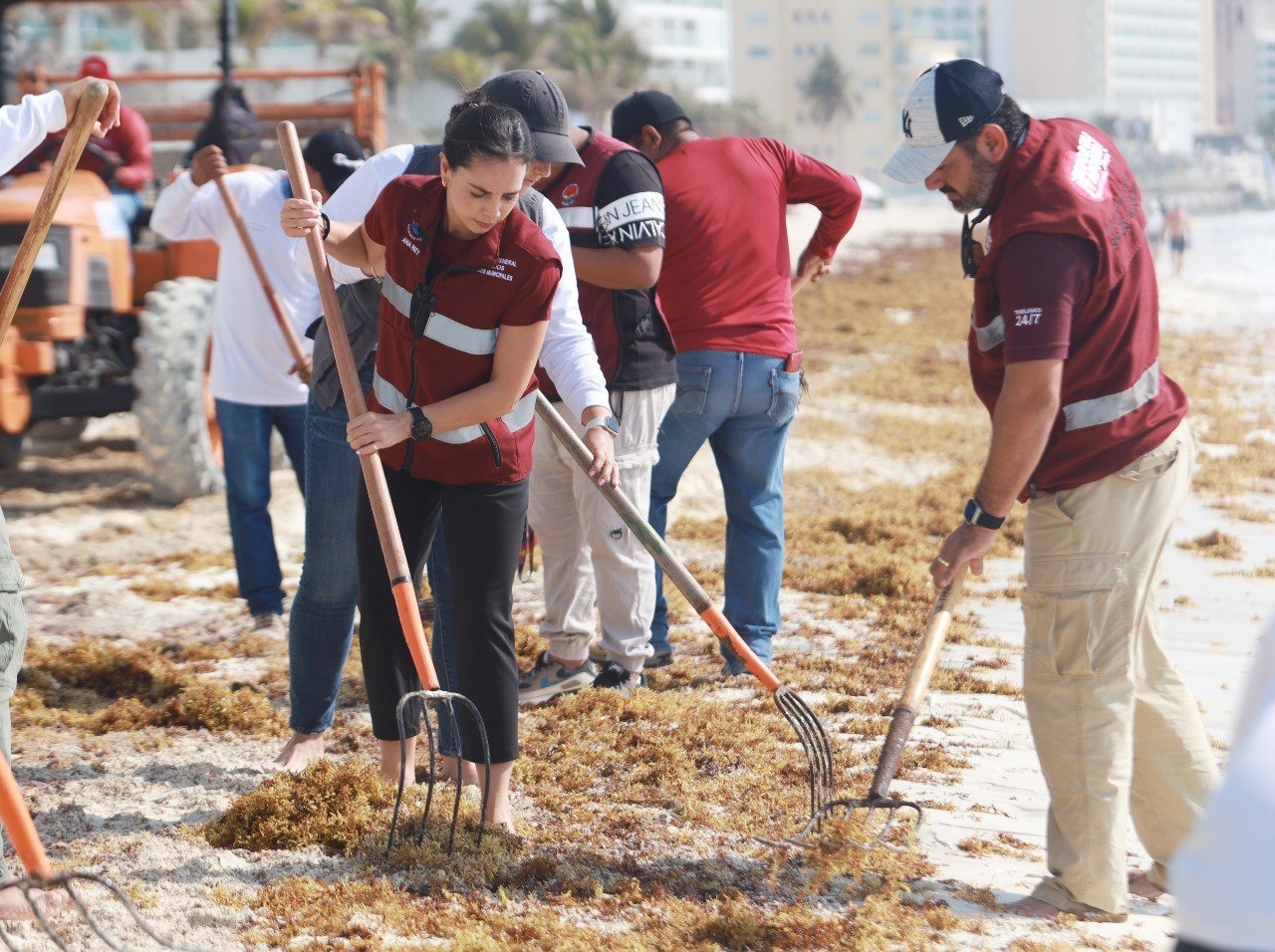 Anuncia que suman más de mil 370 toneladas de sargazo retirados en lo que va del año.