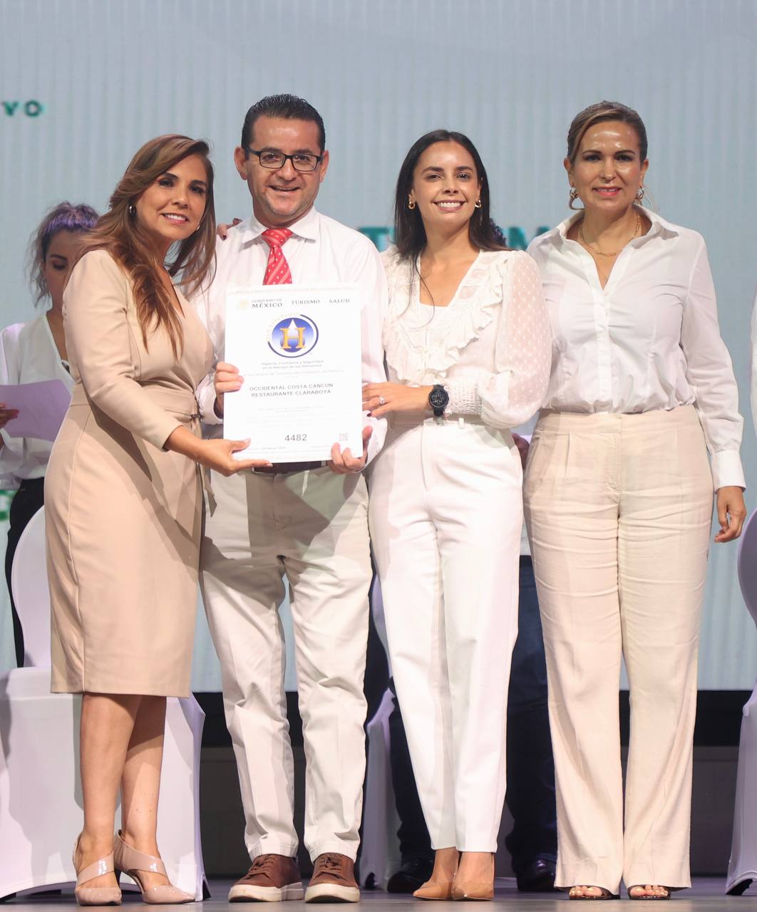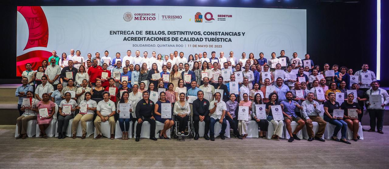 Antes del evento, la Presidenta Municipal participó en la entrega de sellos, distintivos, constancias y acreditaciones de calidad turística, donde se resaltó que Quintana Roo ocupa el primer lugar nacional en diferentes certificaciones.