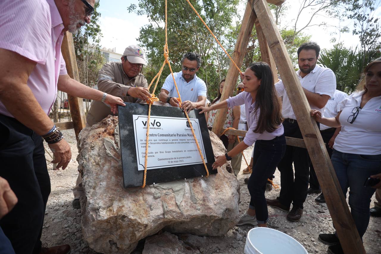 La Presidenta Municipal colocó la primera piedra del Centro Comunitario Paraíso Maya, un espacio que tendrá actividades integrales para los habitantes.
