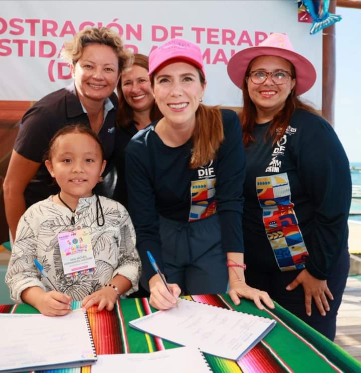Posterior a la firma del convenio, Atenea Gómez, participó en una demostración de Delfinoterapia en la que estuvieron presentes, directivos de la empresa, la presidenta honoraria del Sistema DIF de Isla Mujeres, Minelly Ricalde Magaña, la directora general del DIF, Karla García Velázquez y los regidores Pedro Palma, Alejandra Peniche y Jessica Contreras.